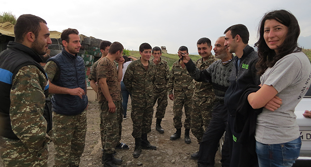 В ночь с 1 по 2 апреля 2016 года в зоне карабахского конфликта возобновились военные действия, начатые со стороны Азербайджана. Интенсивные боевые действия шли по всей линии соприкосновения карабахских и азербайджанских вооруженных сил вплоть до 5 апреля. Для поддержки Армии обороны Нагорного Карабаха уже с утра 2 апреля во всех военкоматах Нагорного Карабаха начали записываться добровольцы, пожелавшие отправиться на передовую линию. В основном это участники первой карабахской войны и мужчины, которые в свое время отслужили в армии. Добровольцы вместе с военнослужащими карабахской армии по сей день продолжают нести боевую службу. Впервой половине мая, в дневные часы, на передовых позициях наблюдается относительное спокойствие. Потому корреспондент Кавказского узла, с разрешения командования, имела возможность побывать в северо-восточном направлении линии соприкосновения.
