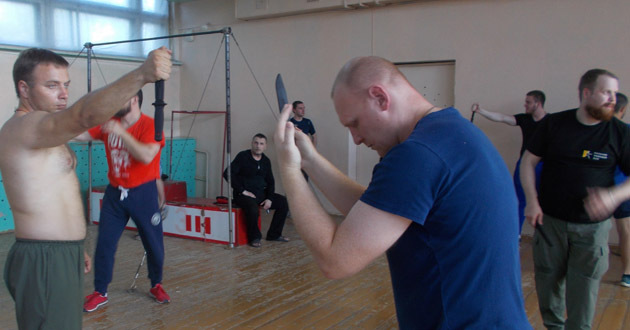 Дмитрий Демушкин (слева) проводит тренировочный бой