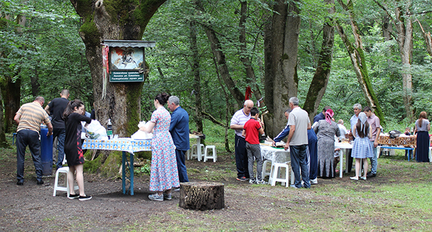 Традиционно, жители республики приезжают в святое место с тремя пирогами, тремя ребрами жертвенных животных и осетинским пивом. Сначала привезенную еду и напитки освящают служители, и только после этого ее могут есть паломники.