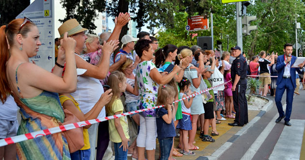 Участники битвы хоров из Нидерландов прошли в колоне парада наций в Сочи 12 июля от Зимнего театра по Курортному проспекту до Южного мола Морского порта