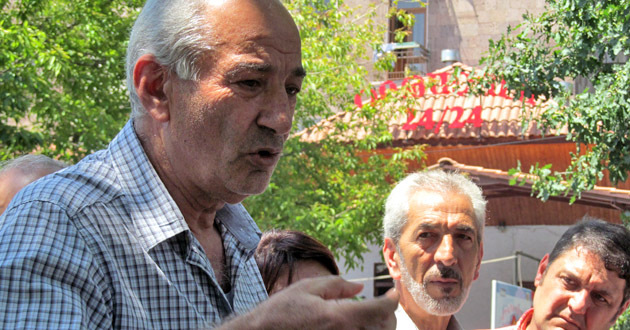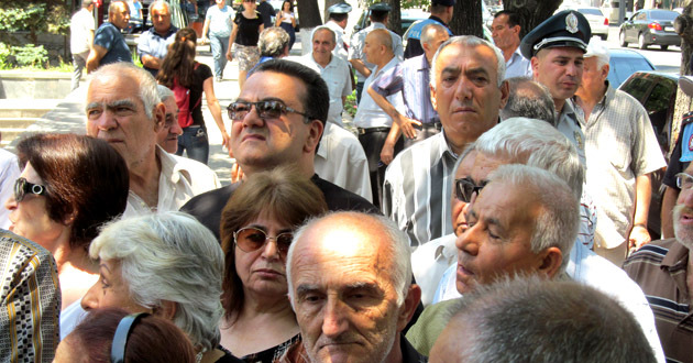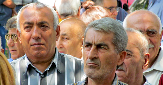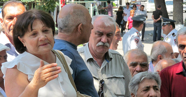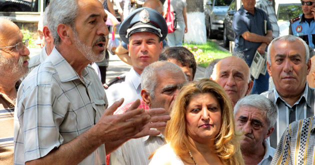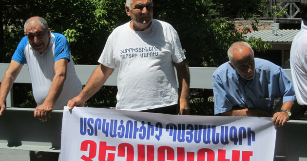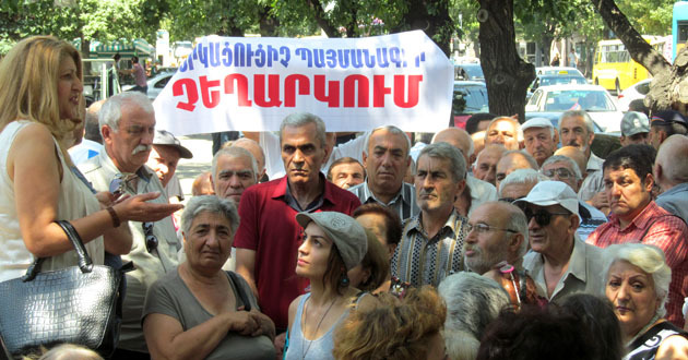 Акция протеста бывших сотрудников завода «Наирит». Надпись на плакате: «Отмена рабского соглашения!»