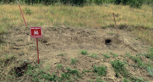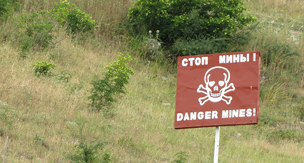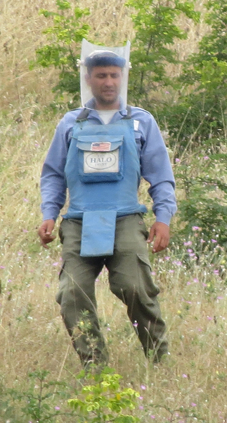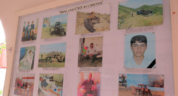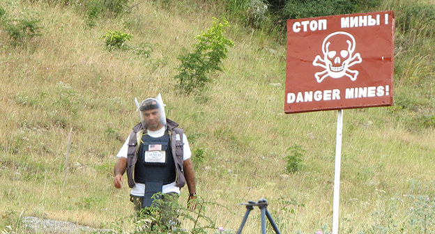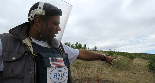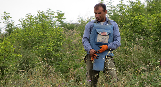 Разминирование территории Нагорного Карабаха от неразорвавшихся боеприпасов, оставшихся после Карабахской войны 90-х годов и эскалации конфликта в апреле 2016 года, проводятся гуманитарной организацией The HALO trust и государственной службой по чрезвычайным ситуациям при правительстве республики. С начала этого года обнаружено и обезврежено 394 боеприпаса, 184 из них обнаружены после апрельской войны. Это шариковые и осколочные авиабомбы, артиллерийские снаряды разного вида, противотанковые и противопехотные мины и гранаты, в том числе и повязанные цветными ленточками бомбы реактивной системы залпового огня LAR-160 израильского производства. Нагорный Карабах, 13 июля 2016 год.