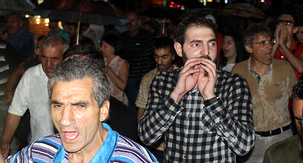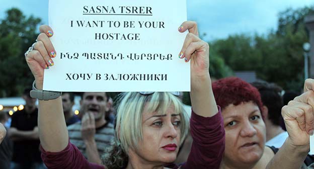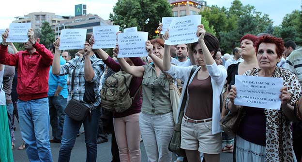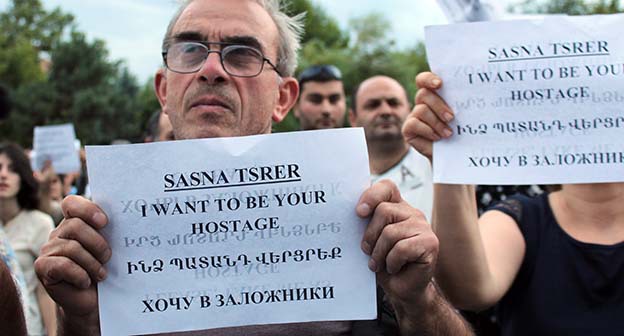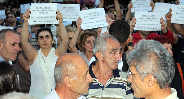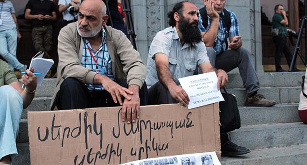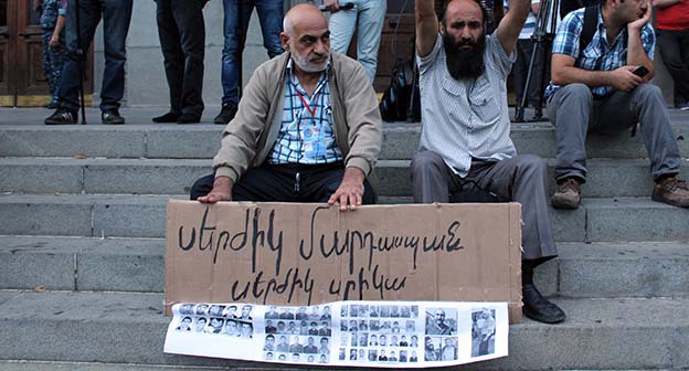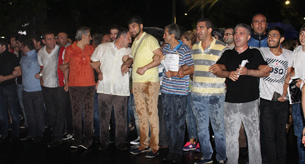 Мятежный Ереван: акция неповиновения в проливной дождь. 28 июля 2016 года. Фоторепортаж корреспондента "Кавказского узла" Тиграна Петросяна