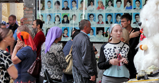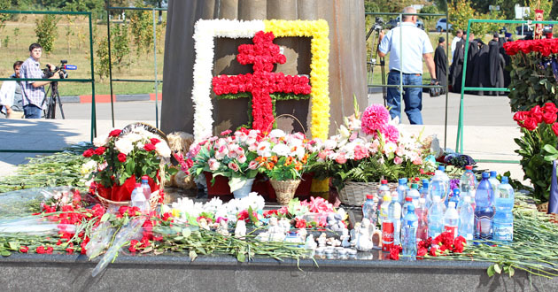 Затем прошел крестный ход с фотографиями погибших до мемориального кладбища «Город ангелов». У памятника «Древо скорби» уже находились врио главы Северной Осетии Вячеслав Битаров, руководители органов власти республики, правоохранительных органов, партий, общественных организаций. Отдать дань памяти по погибшим приехали президент Южной Осетии Леонид Тибилов и спикер парламента республики Анатолий Бибилов.