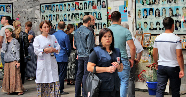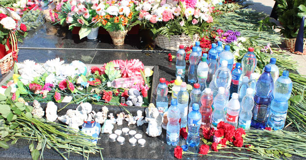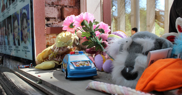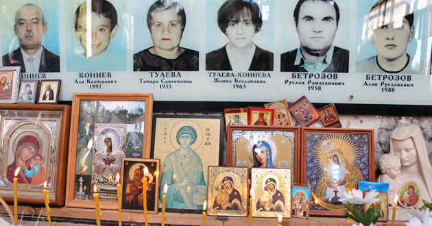 Третий день Вахты памяти по погибшим в террористическом акте в сентябре 2004 года начался с божественной литургии в спортзале разрушенной школы, которая завершилась в 11 часов. Люди приходили семьями, многие приводили с собой детей. В этом году на месте трагедии очень много новых детских игрушек, передает корреспондент «Кавказского узла».