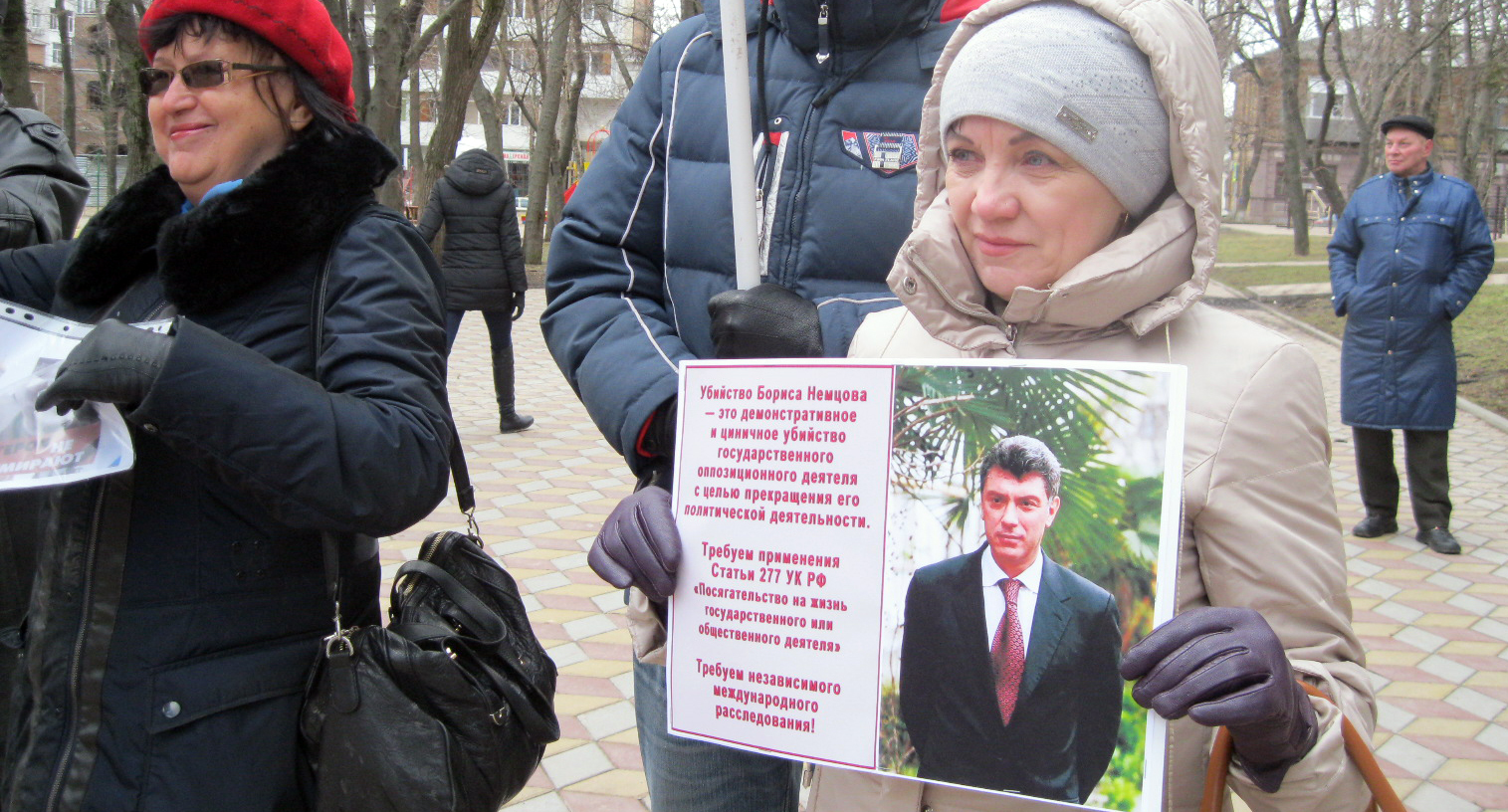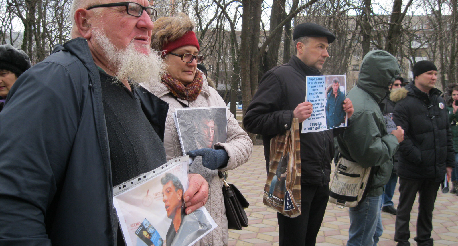 Около ста жителей Ростова-на-Дону 26 февраля 2017 года вышли на акцию памяти убитого политика Бориса Немцова, состоявшуюся в городском парке Строителей около мемориала жертвам политических репрессий.