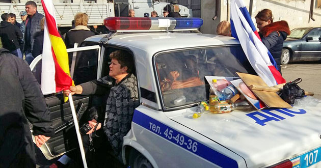 Милиция предоставила свои машины для митингующих сторонников Кокойты, ожидающих решения суда