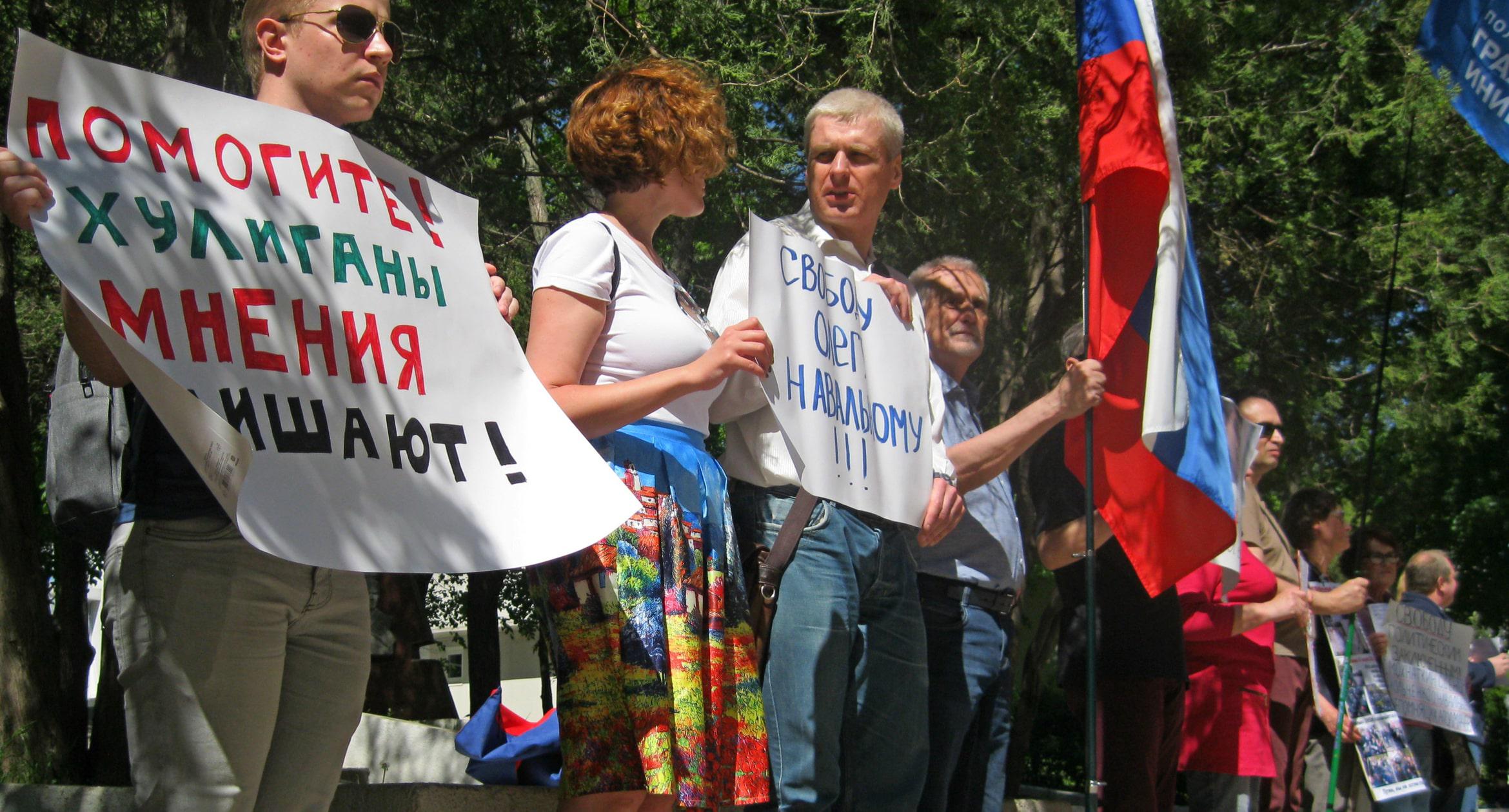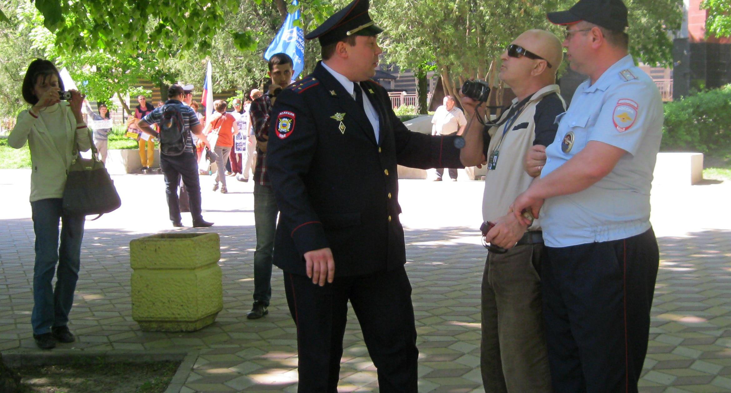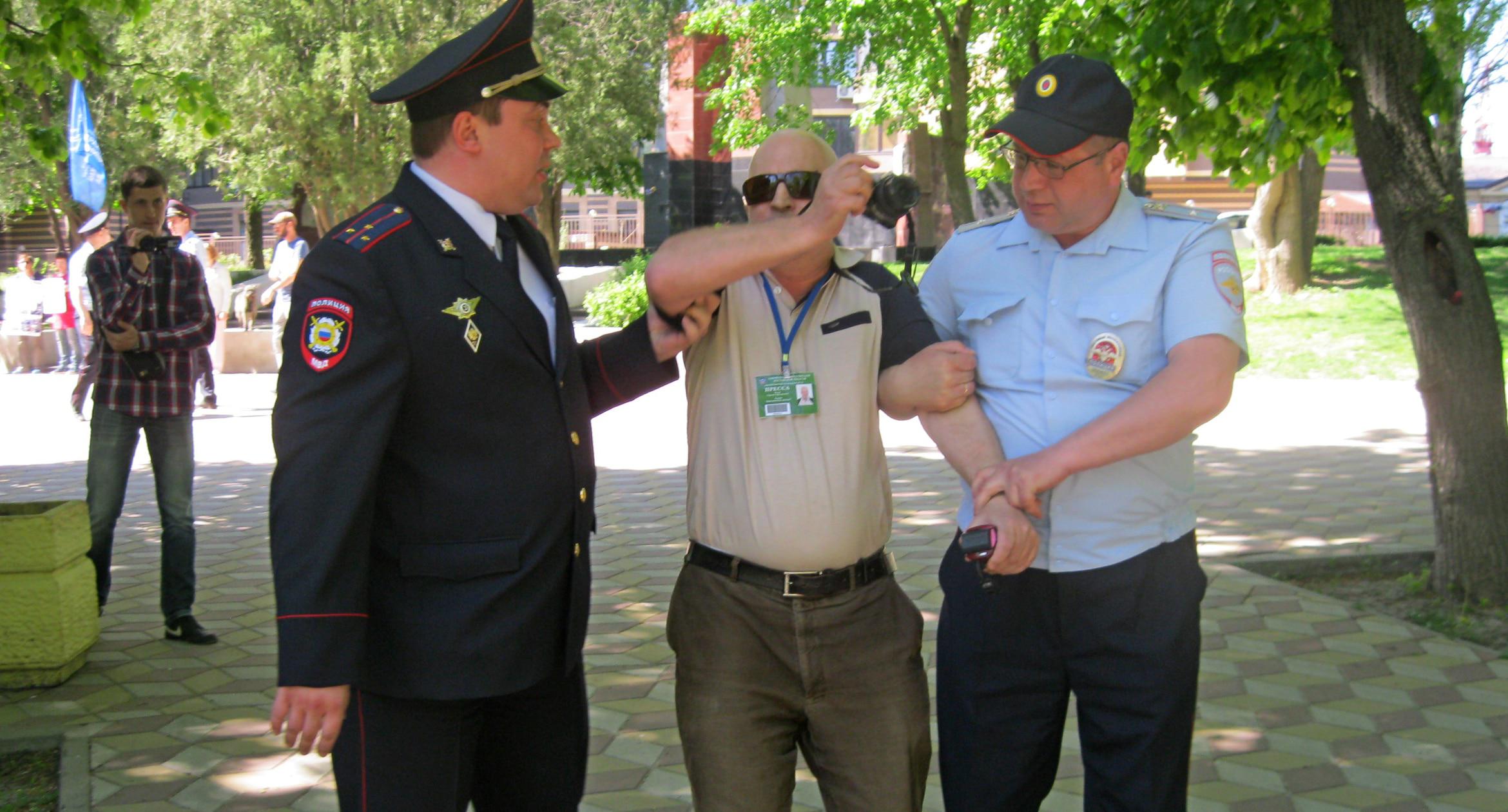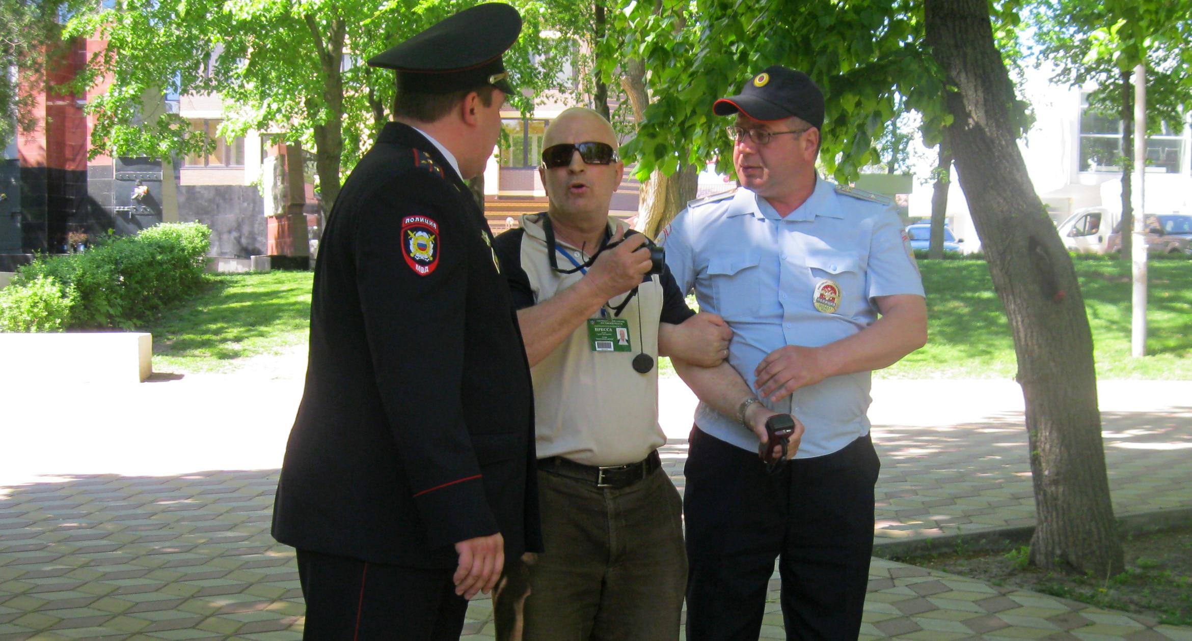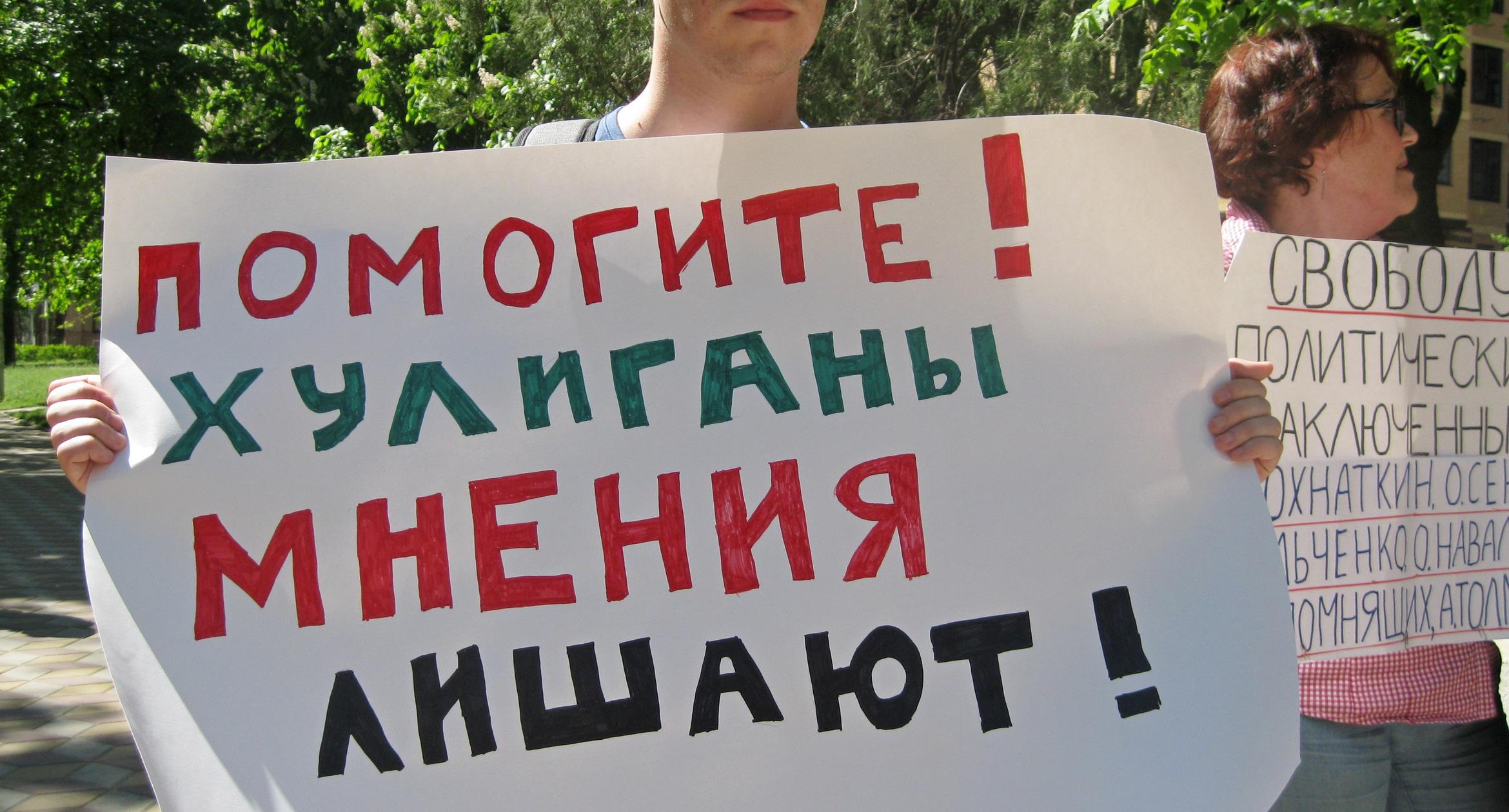 Около тридцати жителей Ростова-на-Дону 6 мая 2017 года вышли на акцию, посвященную пятилетней годовщине событий 6 мая на Болотной площади, когда разрешенная властями акция оппозиции переросла в столкновения с полицией. Охрану общественного порядка и безопасности обеспечивали полтора десятка сотрудников полиции. Мероприятие состоялось в городском парке Строителей около мемориала жертвам политических репрессий. Участники пикета вышли на митинг с российскими флагами и флагами партии «Гражданская инициатива», также в руках у них были фотографии политзаключённых, в частности Дарьи Полюдовой, Олега Навального, ростовского журналиста Александра Толмачёва. Единственным инцидентом стало задержание известного блогера и репортёра Сергея Рулёва, который обозвал и толкнул одну из участниц. Собравшиеся потребовали освободить всех политических заключённых, а также прекращения «Болотного дела». Организаторы сообщили корреспонденту “Кавказского узла”, что изначально они планировали провести акцию на площади перед парком имени Горького, однако её перенесли в безлюдный парк Строителей. Фото Константина Волгина для “Кавказского узла”