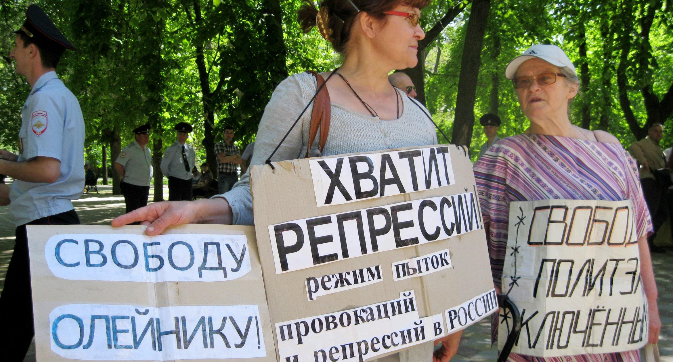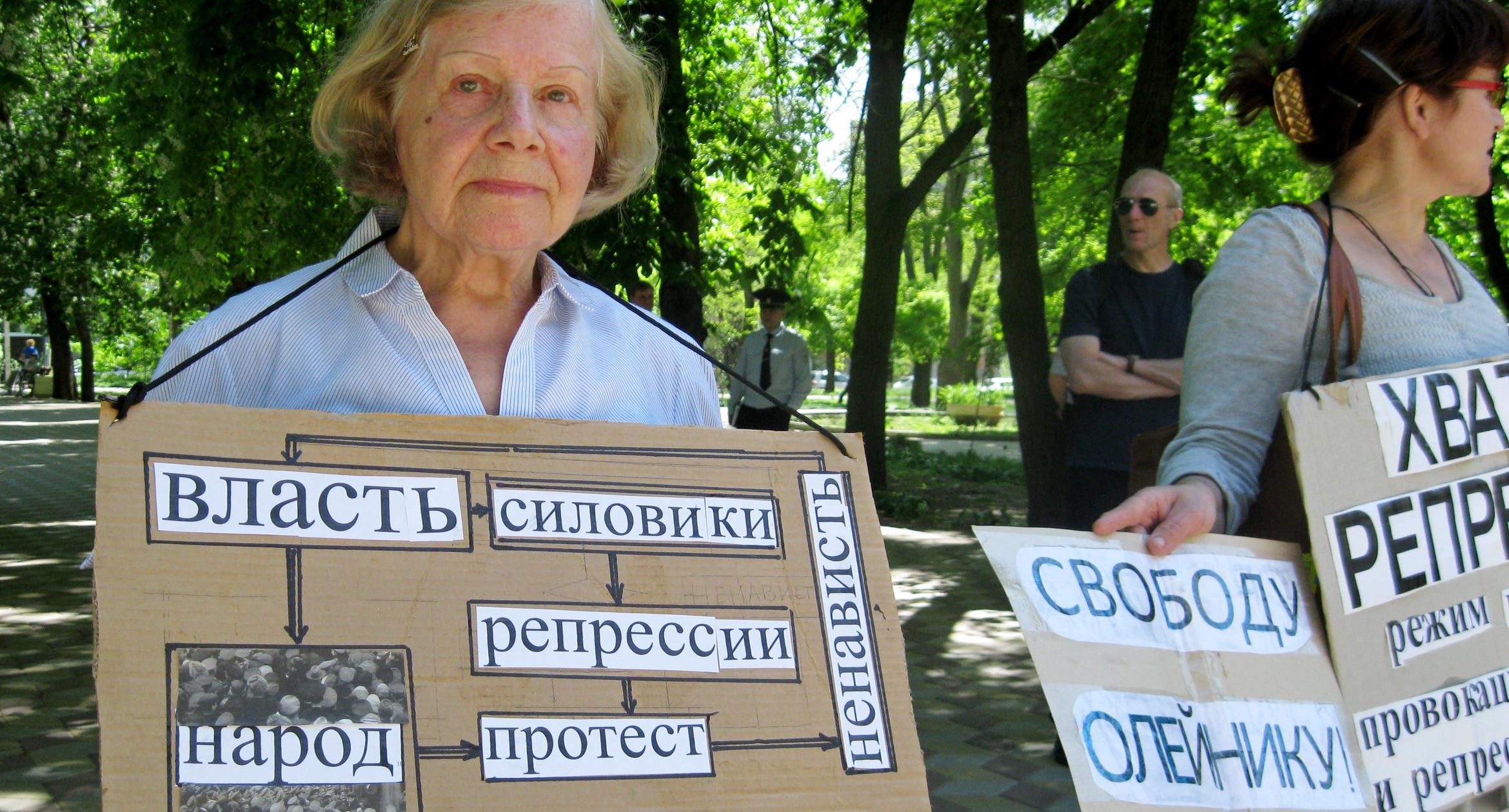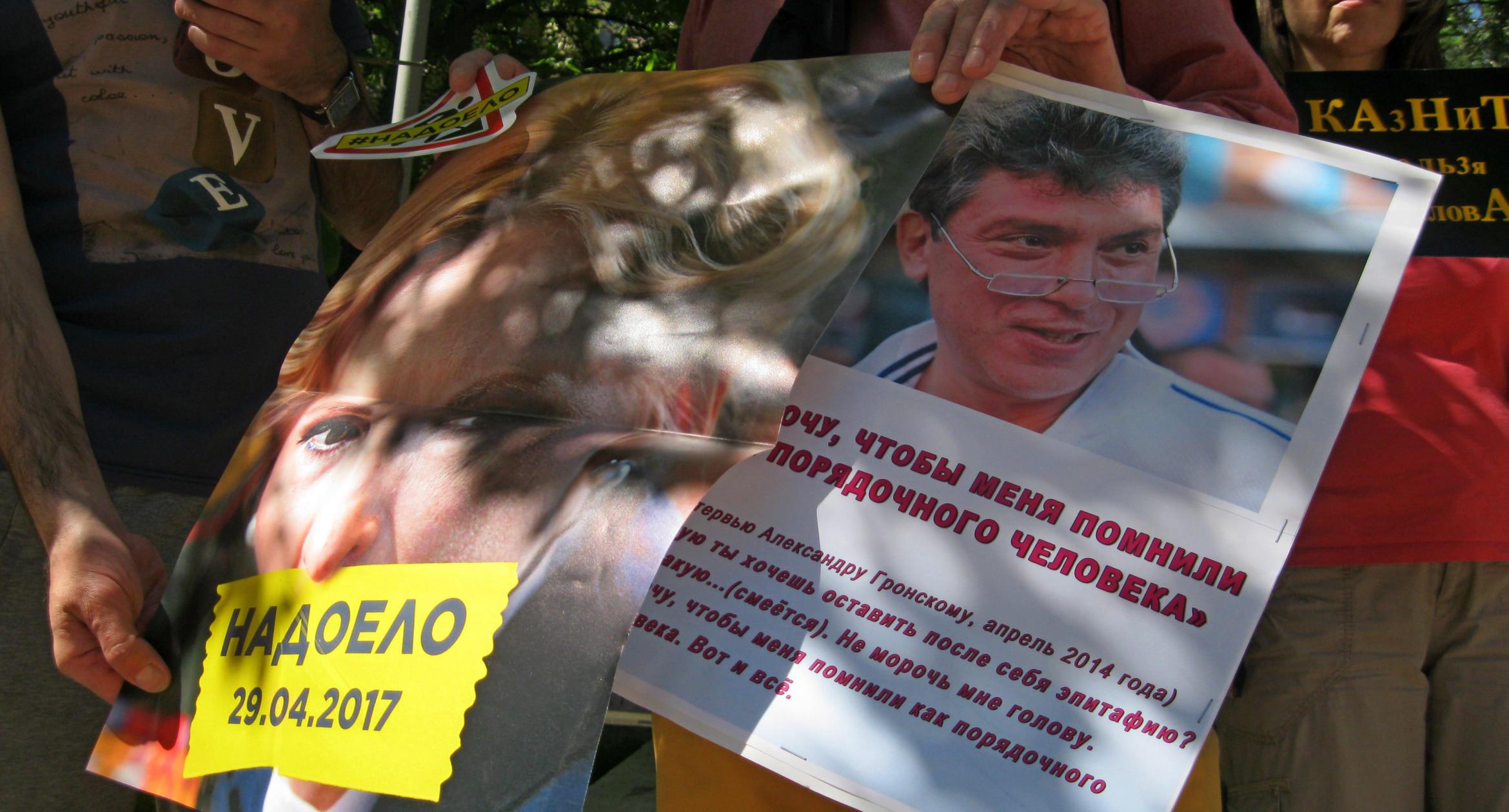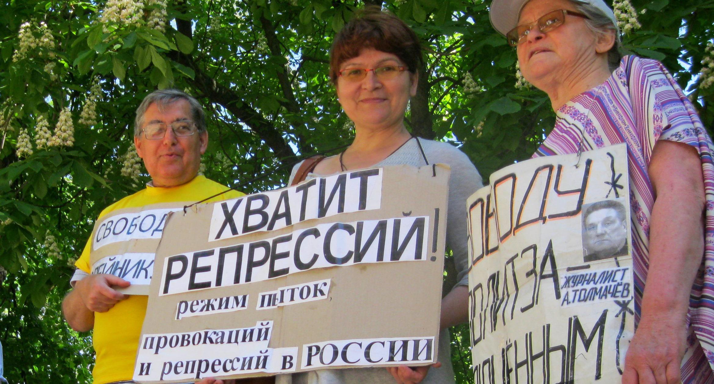 Около тридцати жителей Ростова-на-Дону 6 мая 2017 года вышли на акцию, посвященную пятилетней годовщине событий 6 мая на Болотной площади, когда разрешенная властями акция оппозиции переросла в столкновения с полицией. Охрану общественного порядка и безопасности обеспечивали полтора десятка сотрудников полиции. Мероприятие состоялось в городском парке Строителей около мемориала жертвам политических репрессий. Участники пикета вышли на митинг с российскими флагами и флагами партии «Гражданская инициатива», также в руках у них были фотографии политзаключённых, в частности Дарьи Полюдовой, Олега Навального, ростовского журналиста Александра Толмачёва. Единственным инцидентом стало задержание известного блогера и репортёра Сергея Рулёва, который обозвал и толкнул одну из участниц. Собравшиеся потребовали освободить всех политических заключённых, а также прекращения «Болотного дела». Организаторы сообщили корреспонденту “Кавказского узла”, что изначально они планировали провести акцию на площади перед парком имени Горького, однако её перенесли в безлюдный парк Строителей. Фото Константина Волгина для “Кавказского узла”