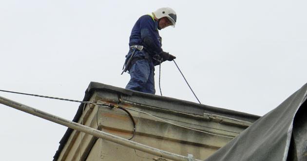 Сотрудник МЧС на крыше разрушенного дома