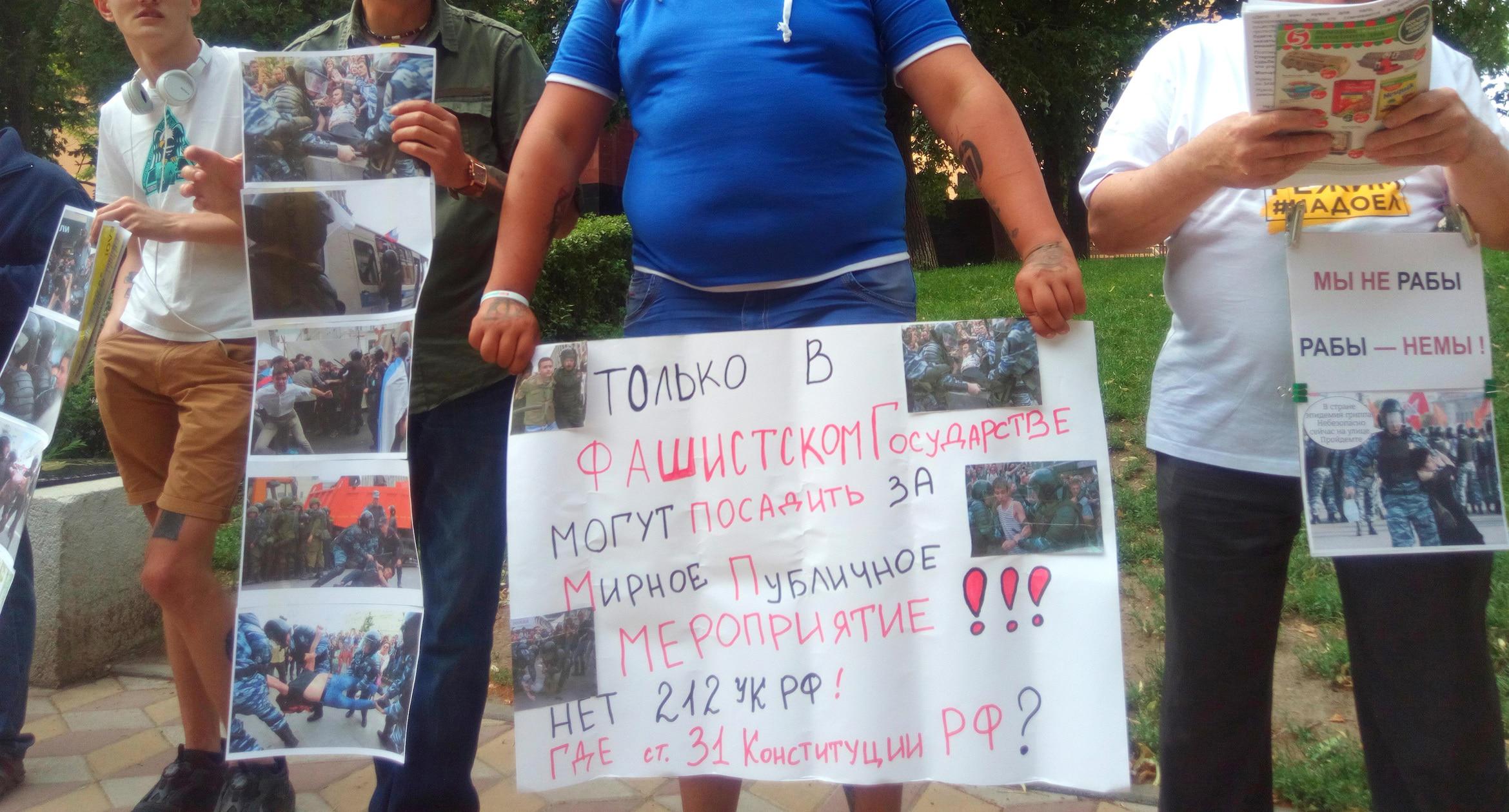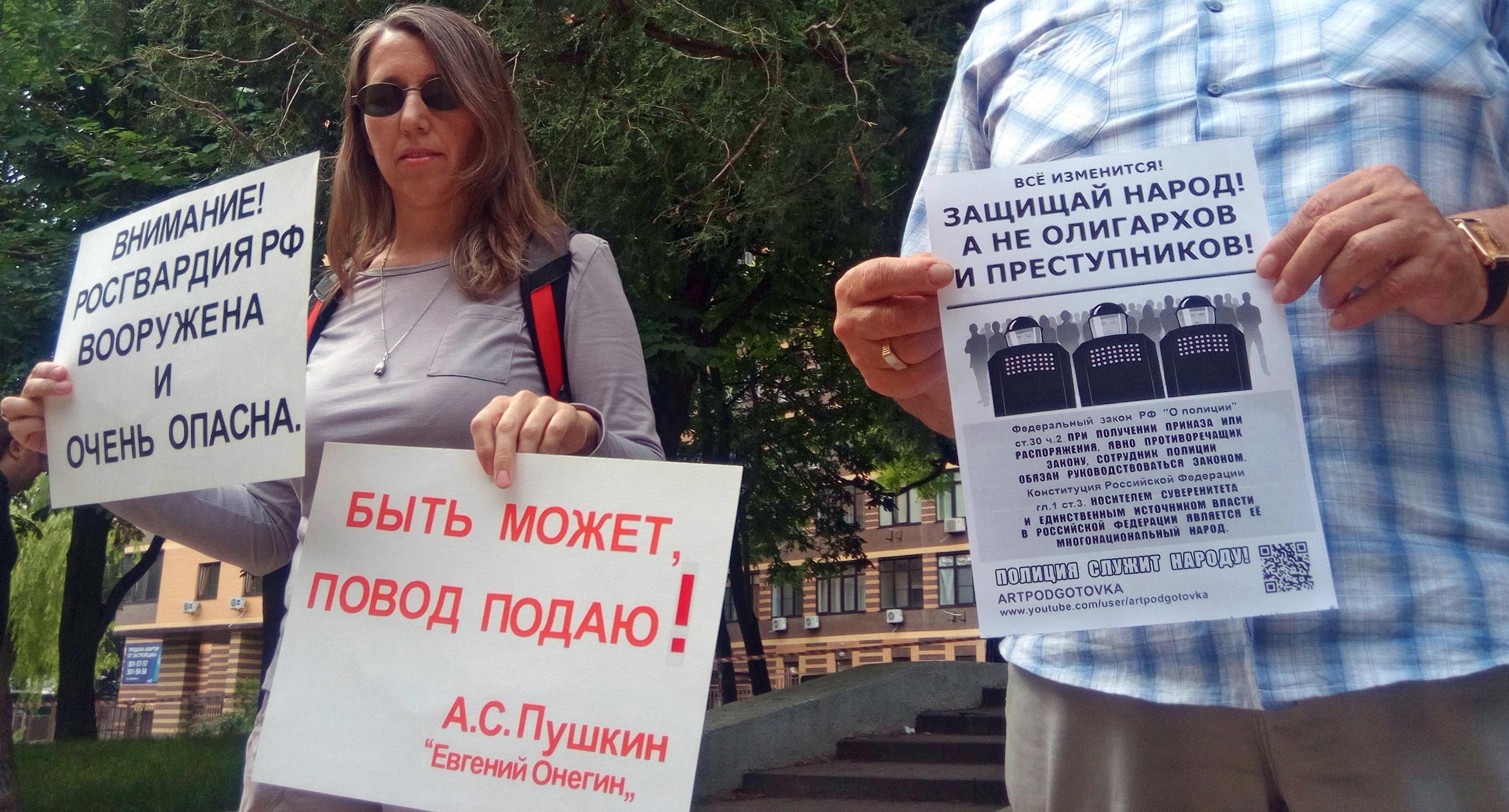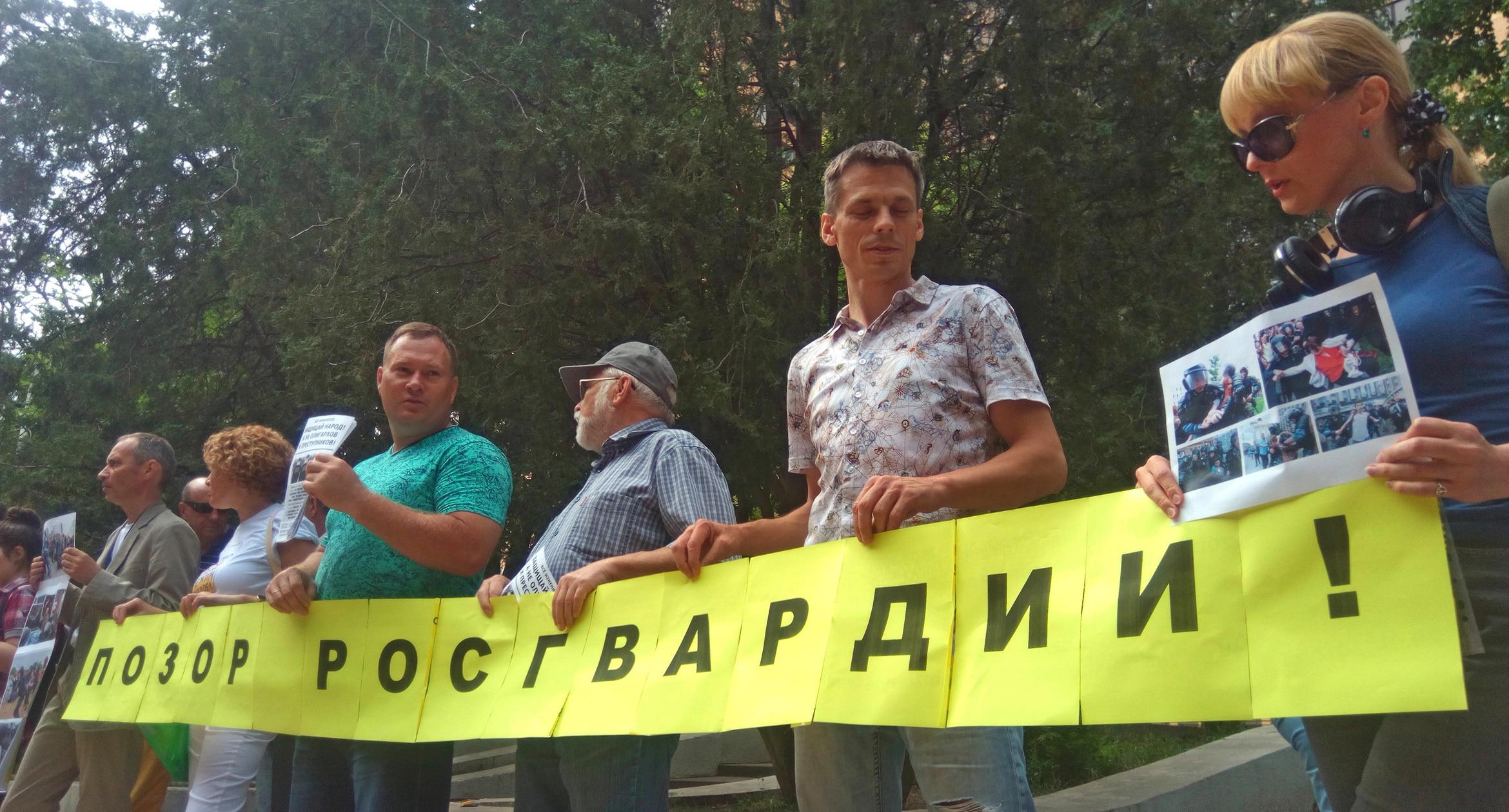 Пикет оппозиции в Ростове-на-Дону под лозунгом "Позор Росгвардии!"