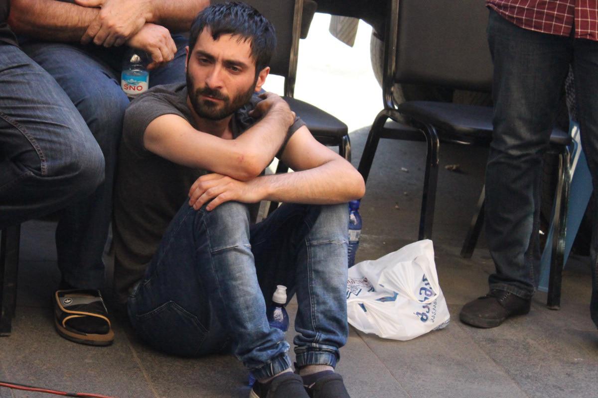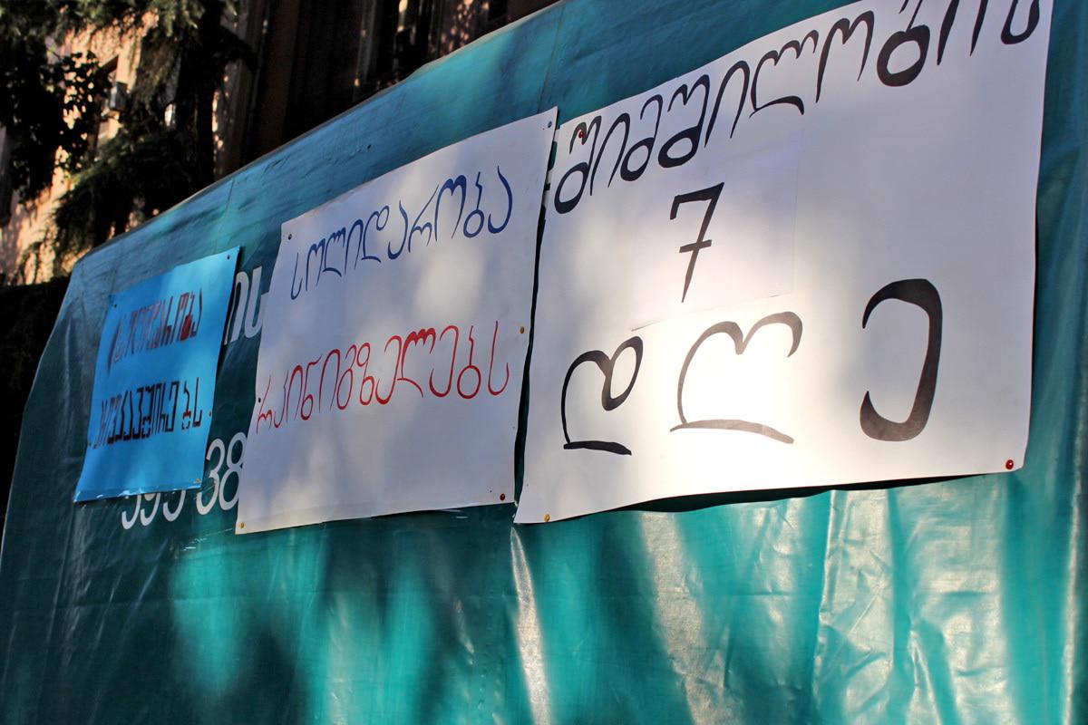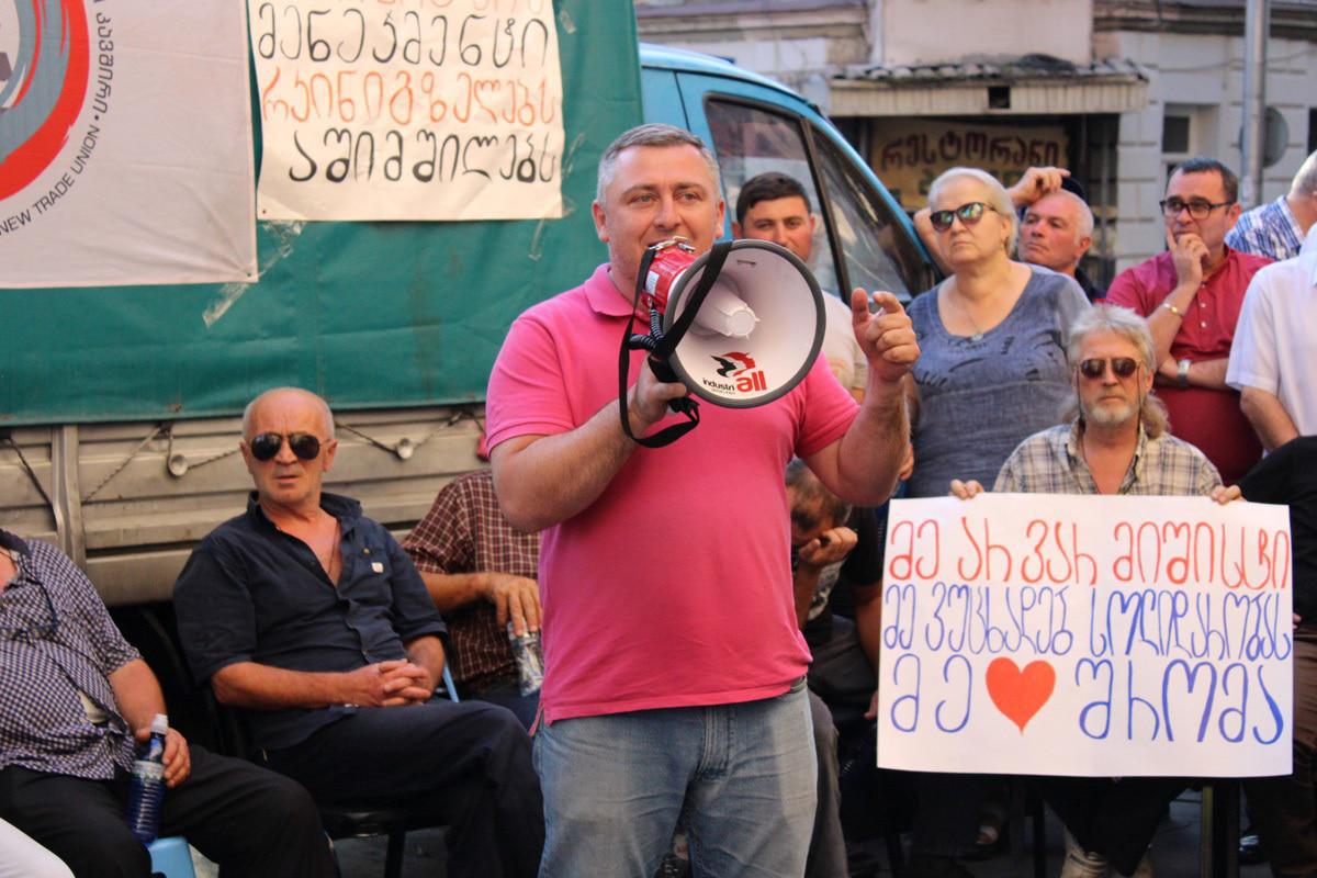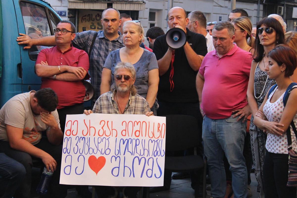 Один из участников акции солидарности с плакатом "Я не мишист. Я объявляю солидарность. Я люблю трудиться"