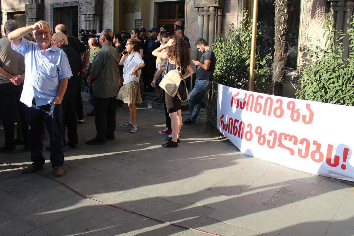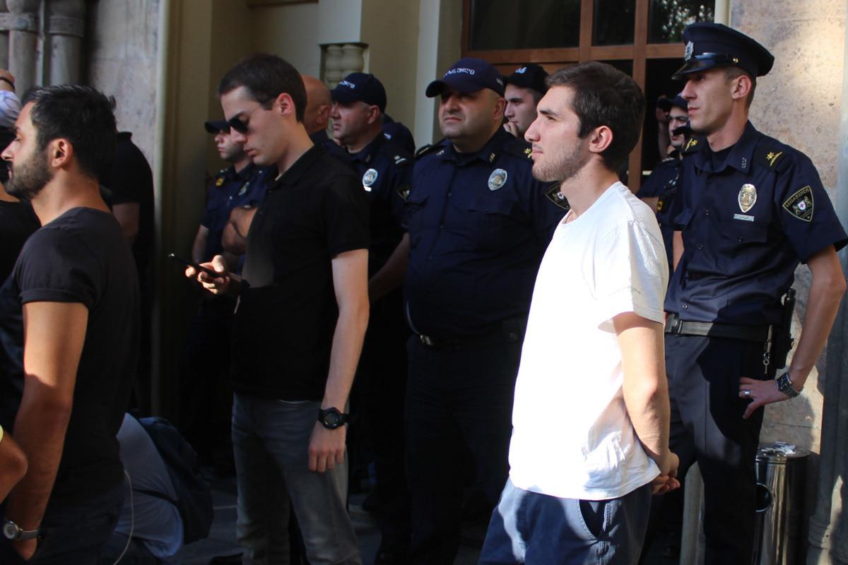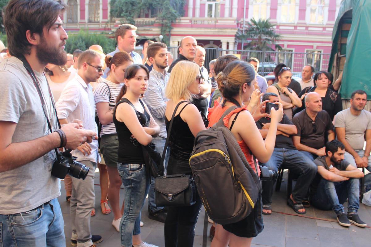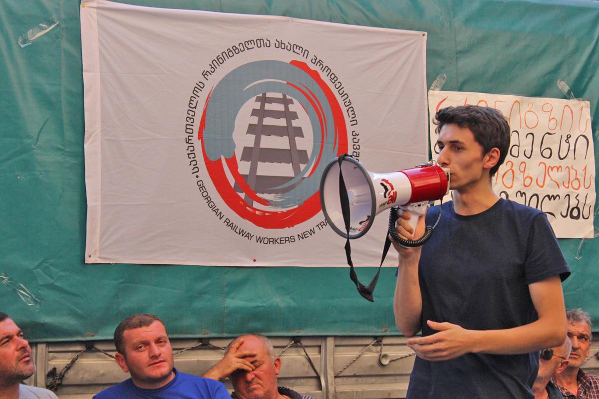 Один из участников акции солидарности с плакатом "Я не мишист. Я объявляю солидарность. Я люблю трудиться"