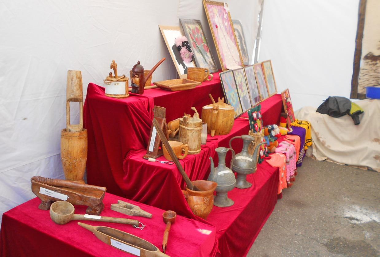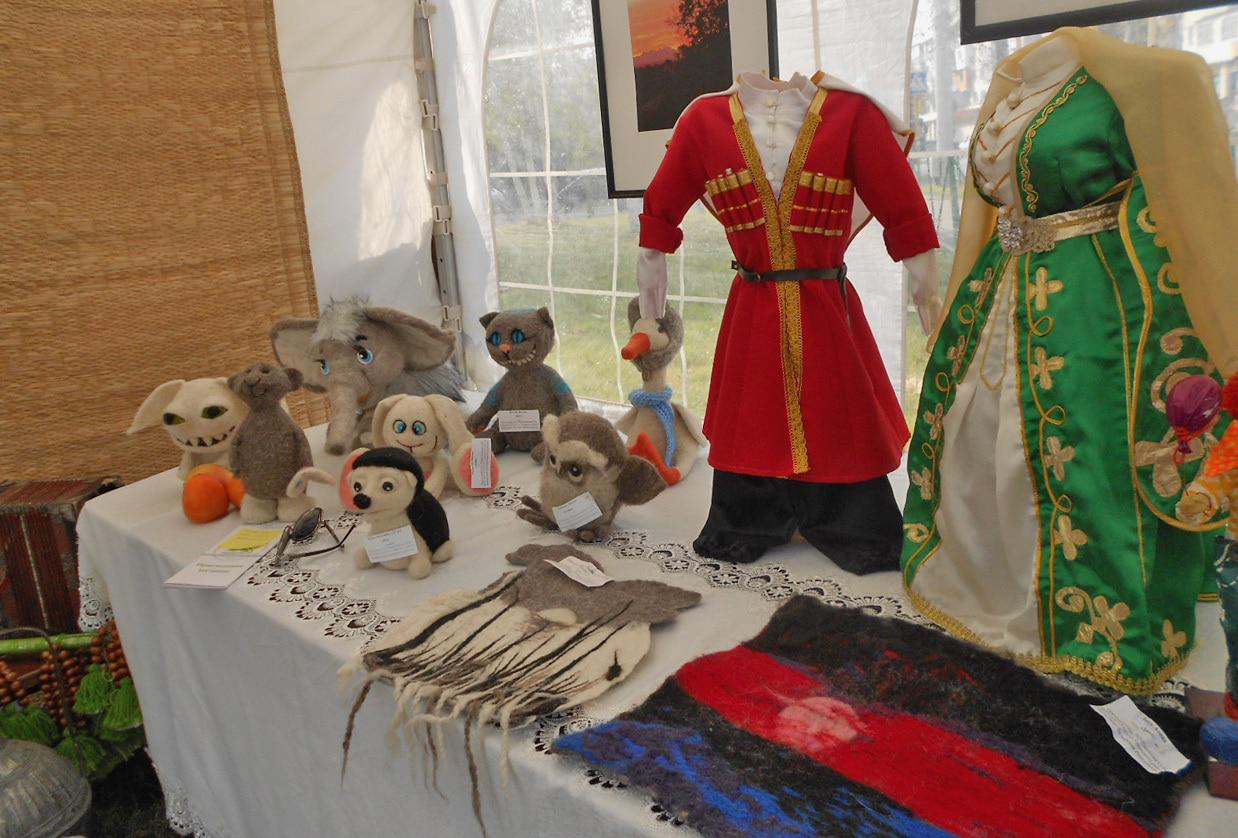 По периметру площади были установлены палатки, в которых демонстрировались балкарские войлочные ковры, камни из горных балкарских сел, национальные костюмы и кухонная утварь.