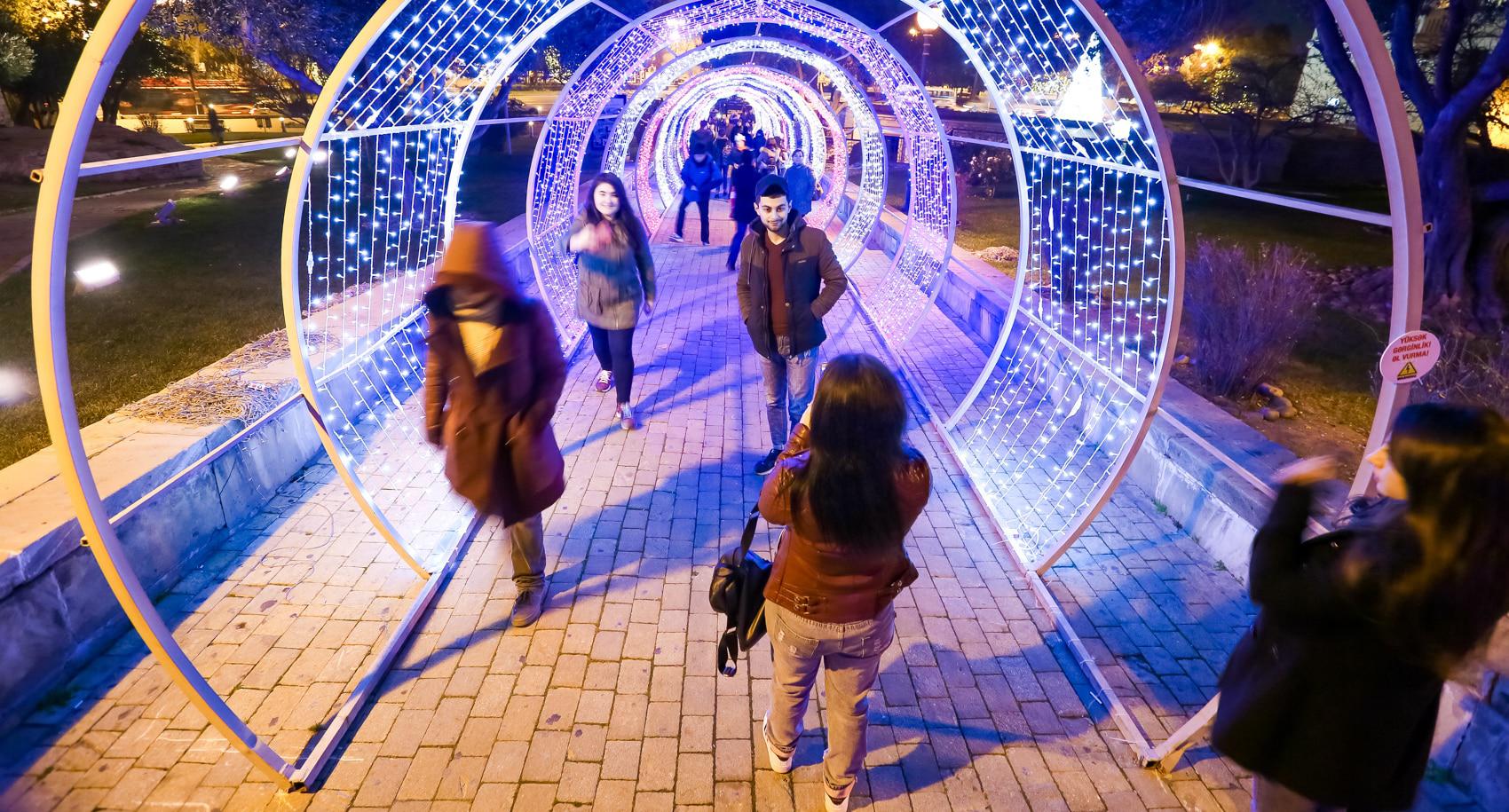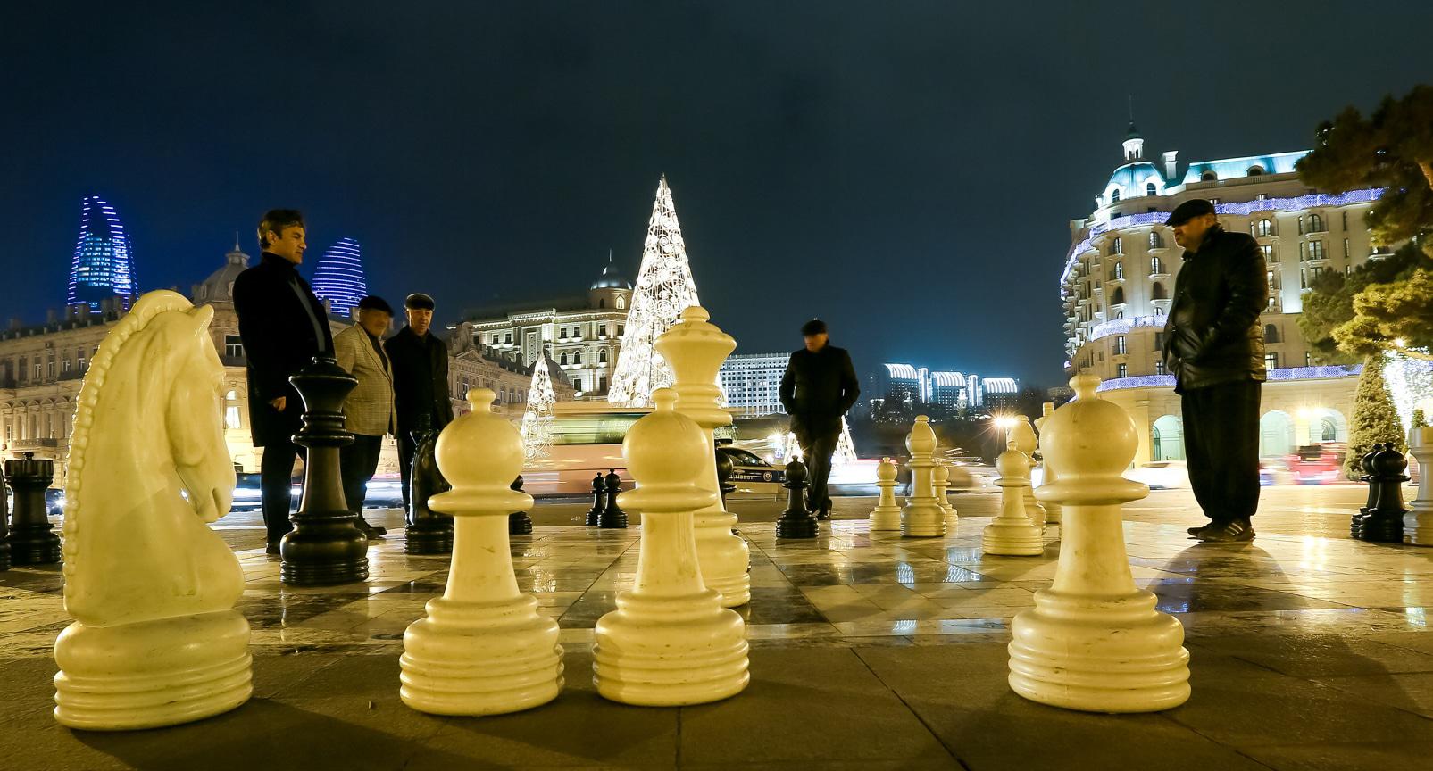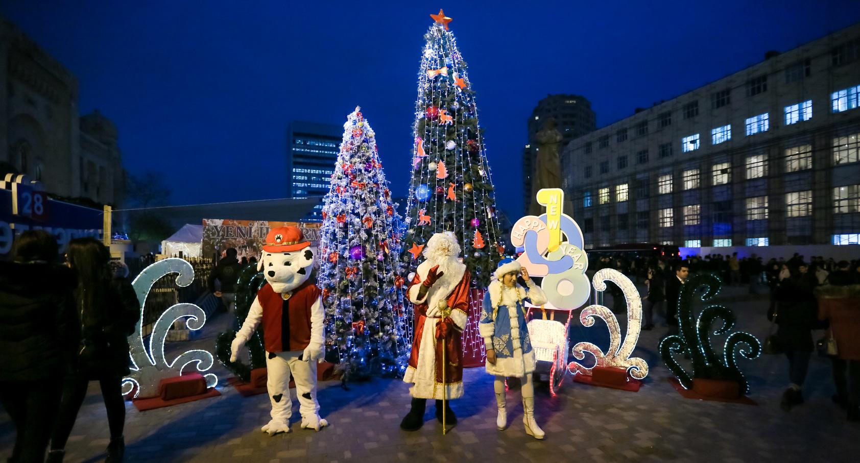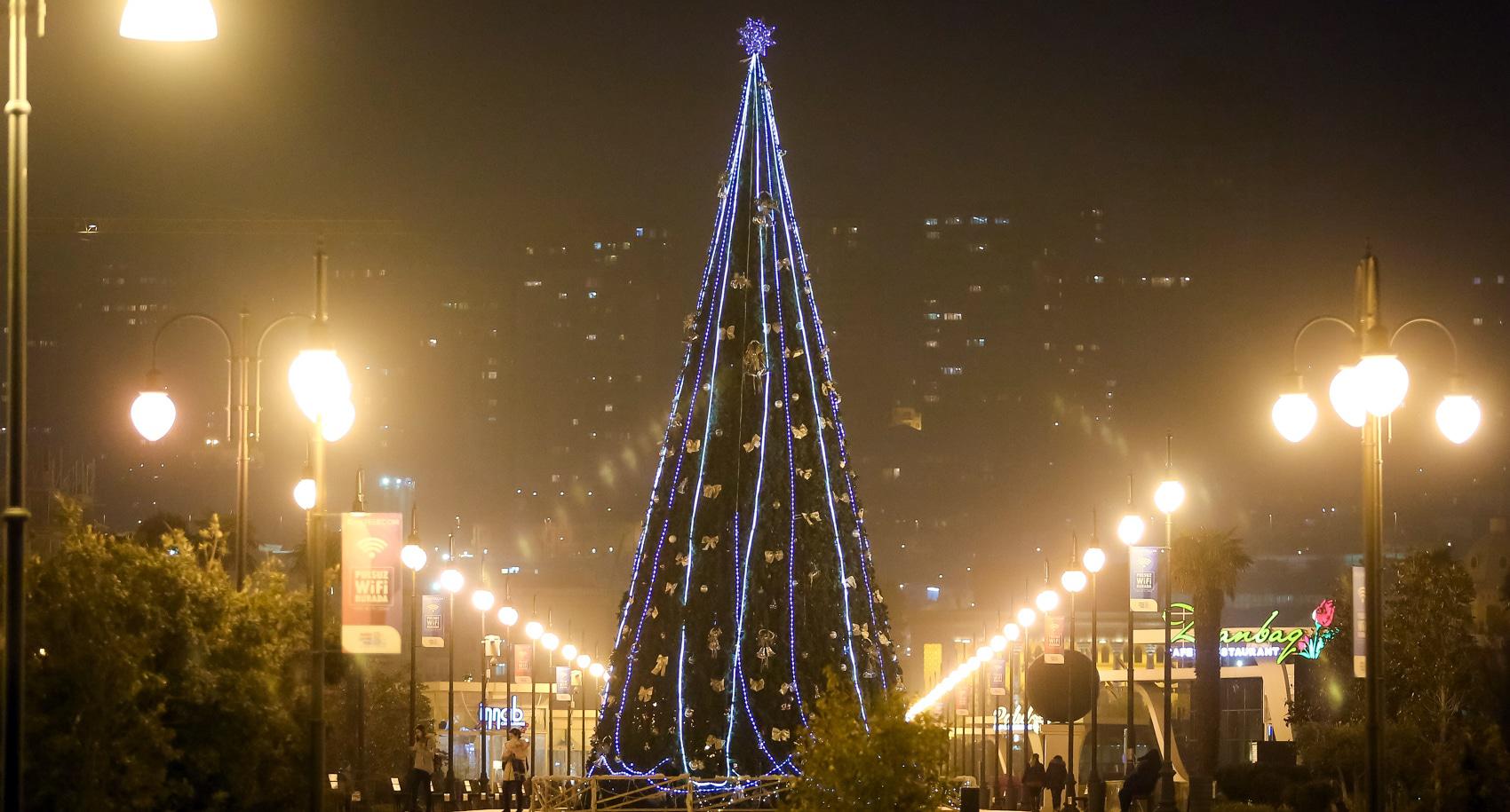 Перед Новым годом Баку особенно красив. В вечерние часы город сверкает иллюминацией. Световыми гирляндами украшены стены Старого города. На Площади фонтанов – новогодняя ярмарка, где можно купить книги и сувениры. Здесь же горожане и туристы могут перекусить в импровизированных кафе. Высокие праздничные елки установлены на Площади Фонтанов, Площади Азнефть и Зимнем парке. Для забавы детворы установлены аттракционы. Близ Девичьей башни можно пройти по «световому тоннелю». Фоторепортаж корреспондента “Кавказского узла” Азиза Каримова.
