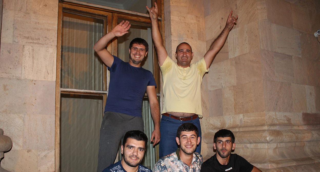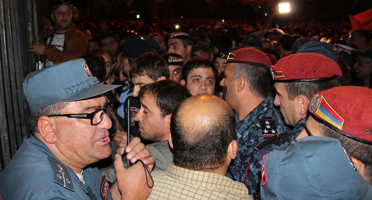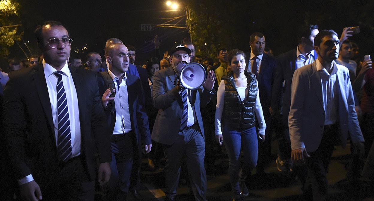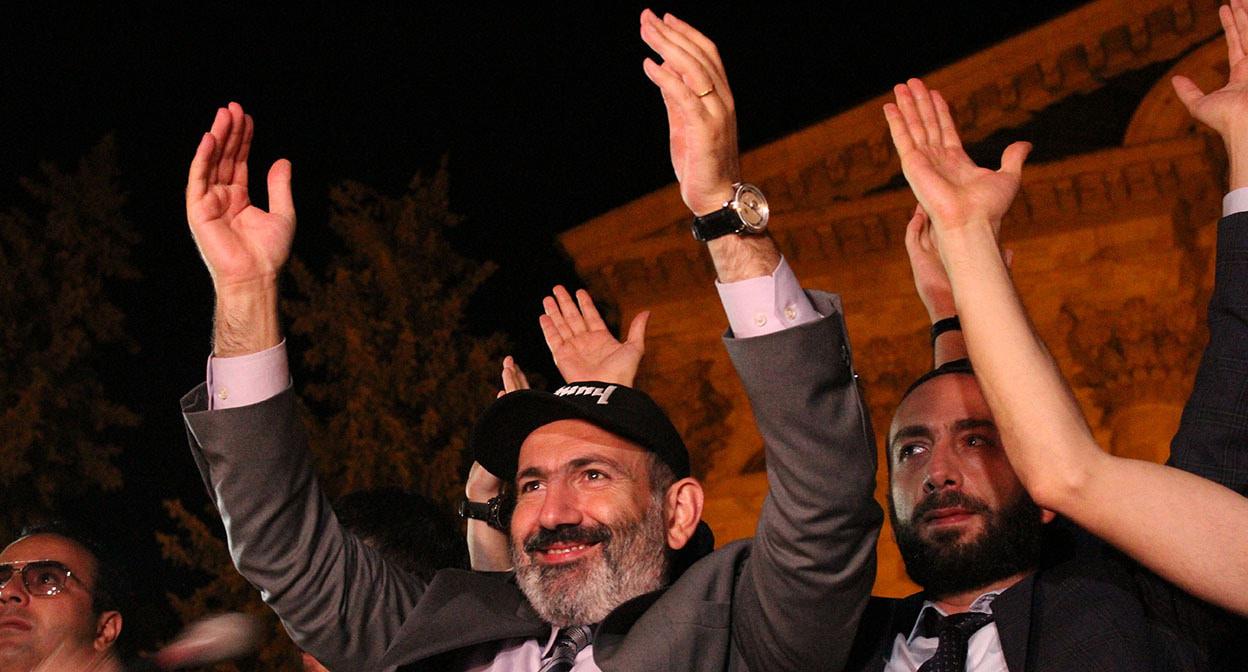 Никол Пашинян (слева) на митинге у здания парламента