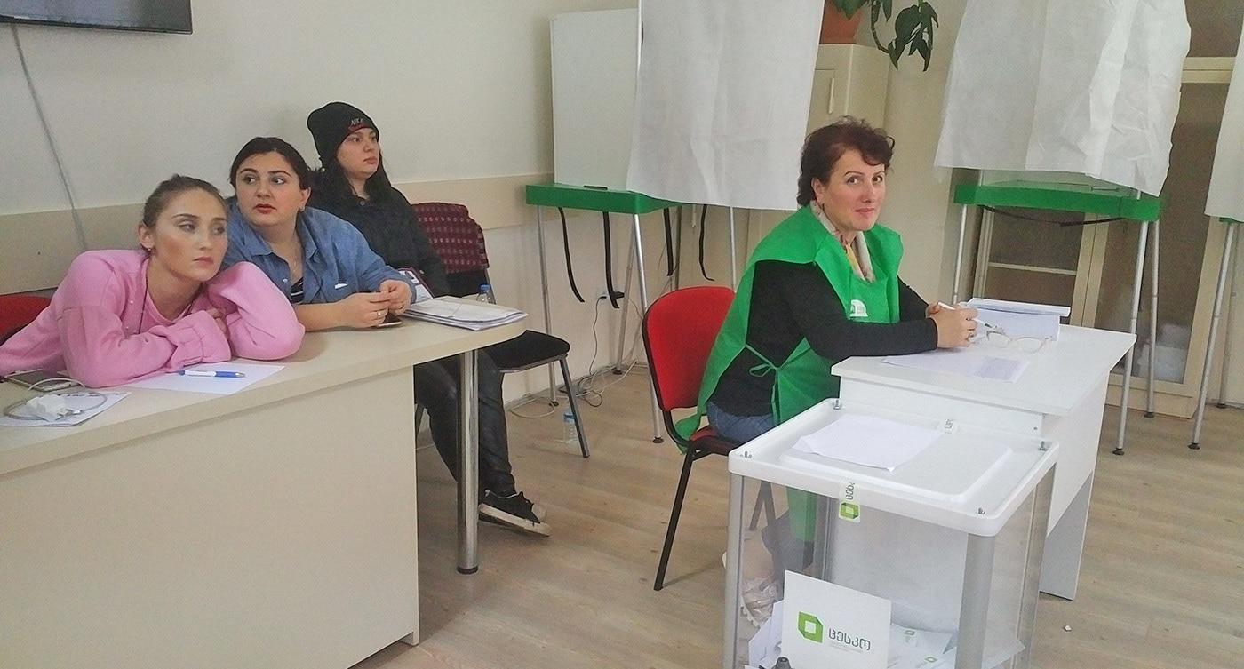 Наблюдатели и член комиссии избирательного участка №71 в Тбилиси