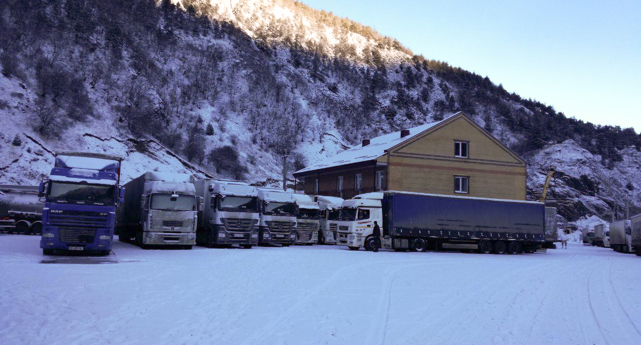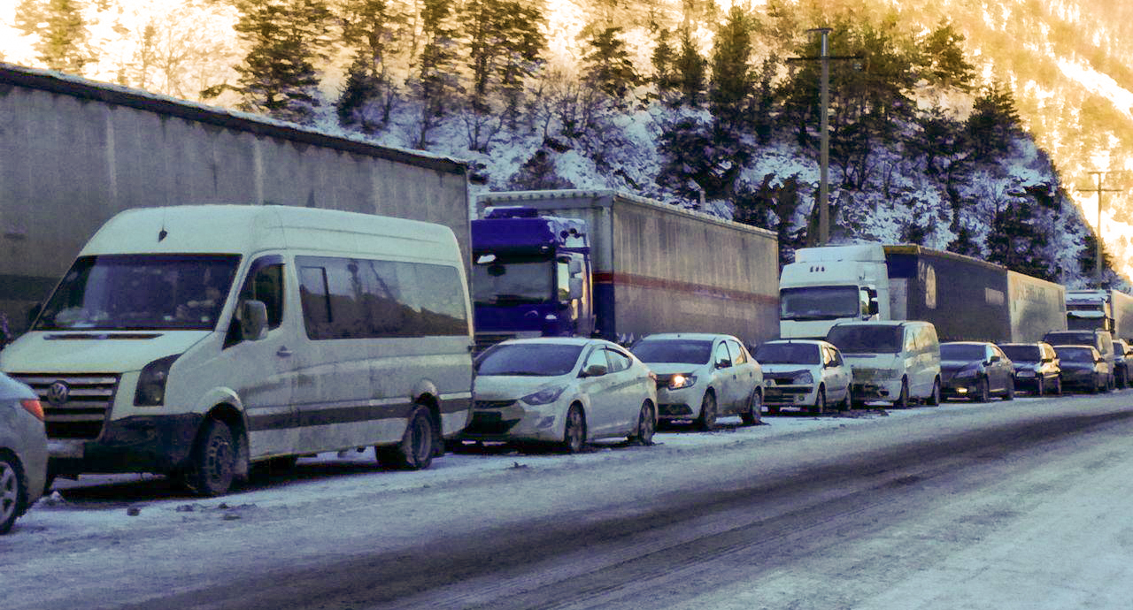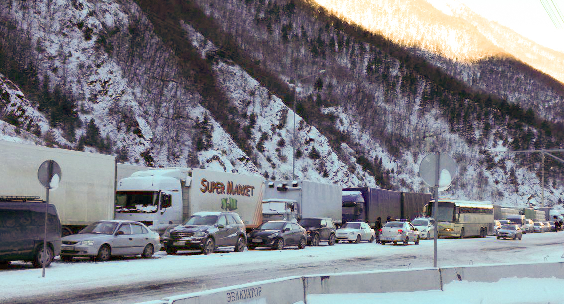 Скопление транспортных средств у КПП "Верхний Ларс"