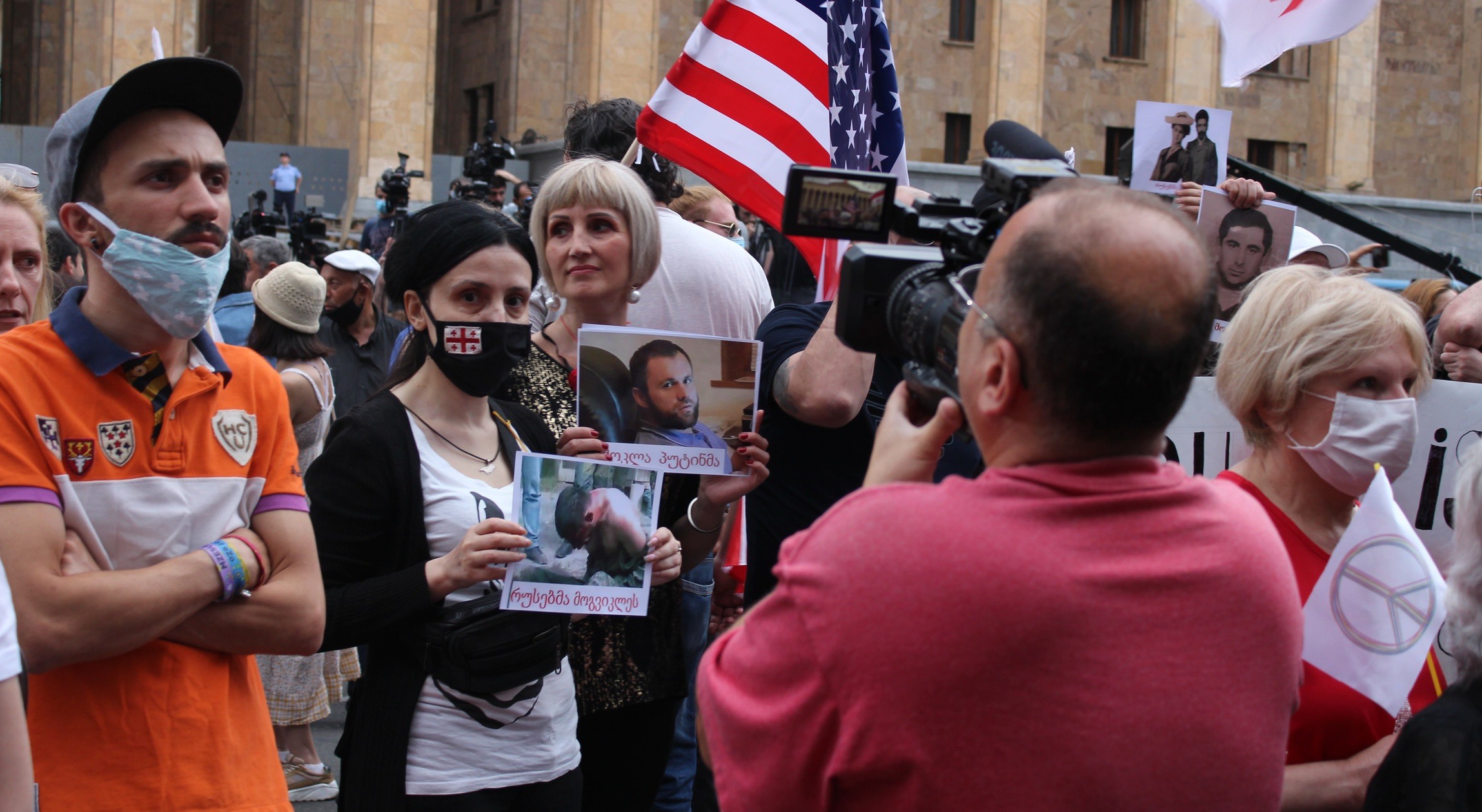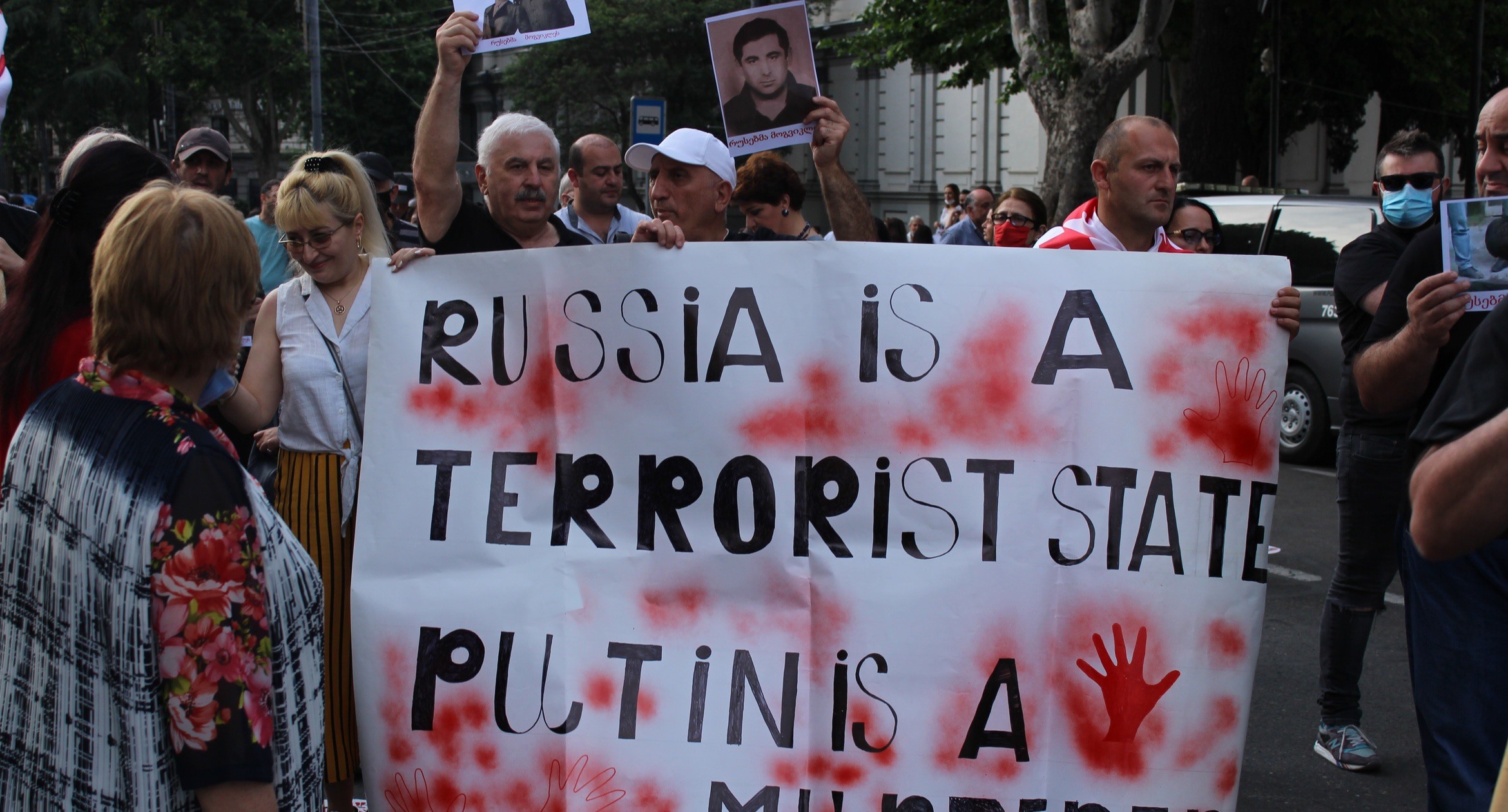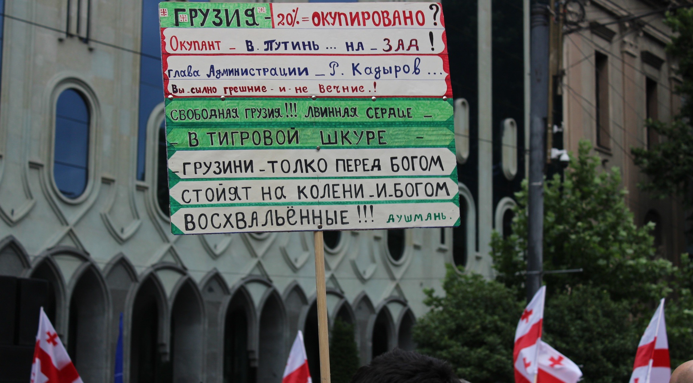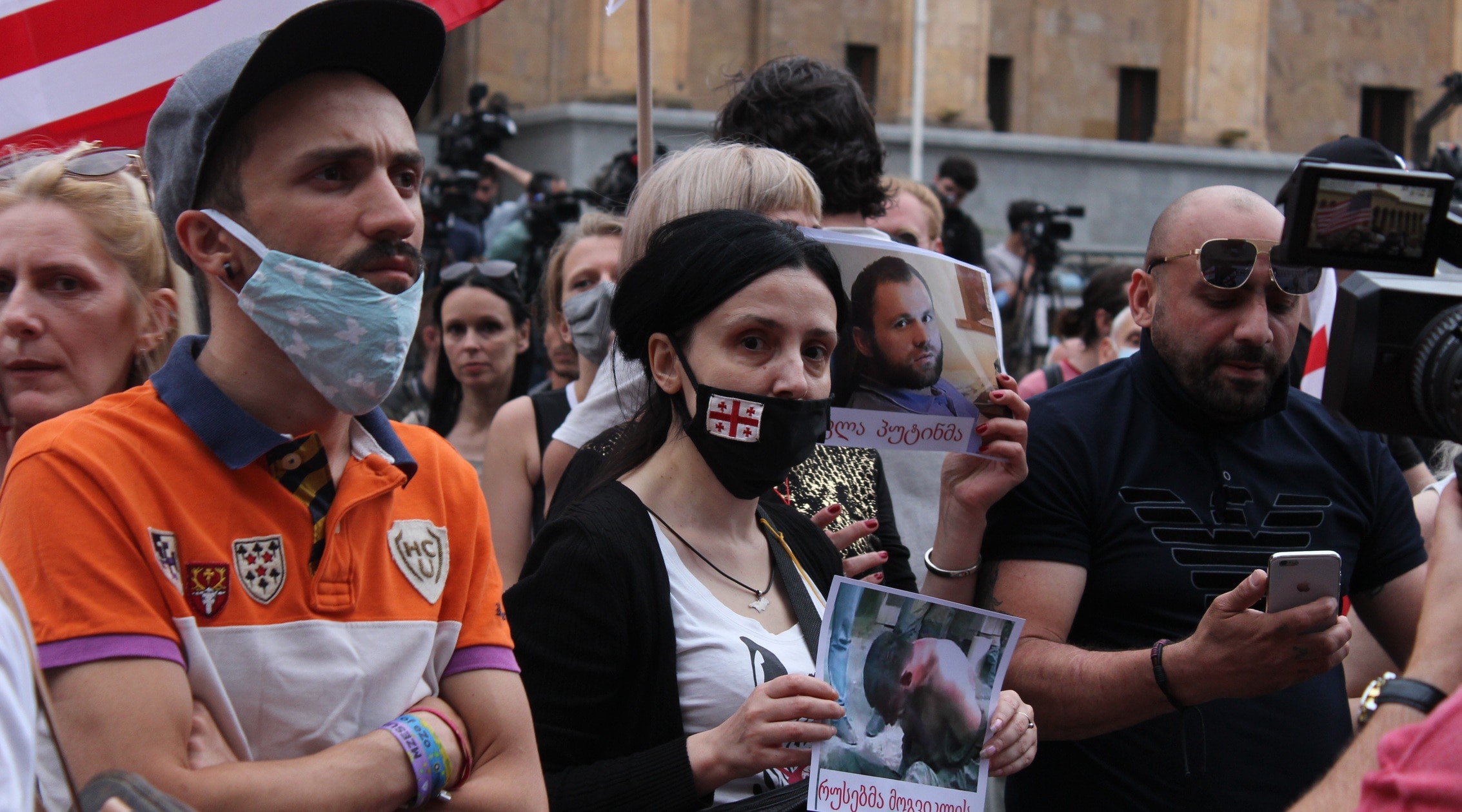 На руке между большим и указательным пальцами татуировка с надписью "Грузия" и изображением контура ее границ