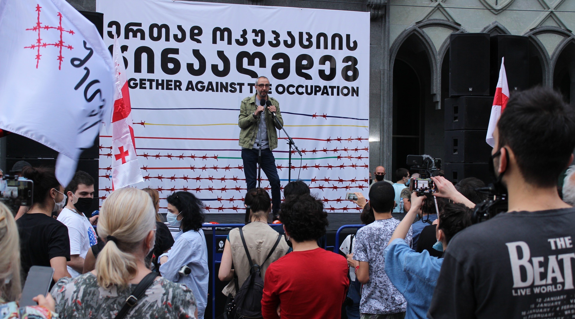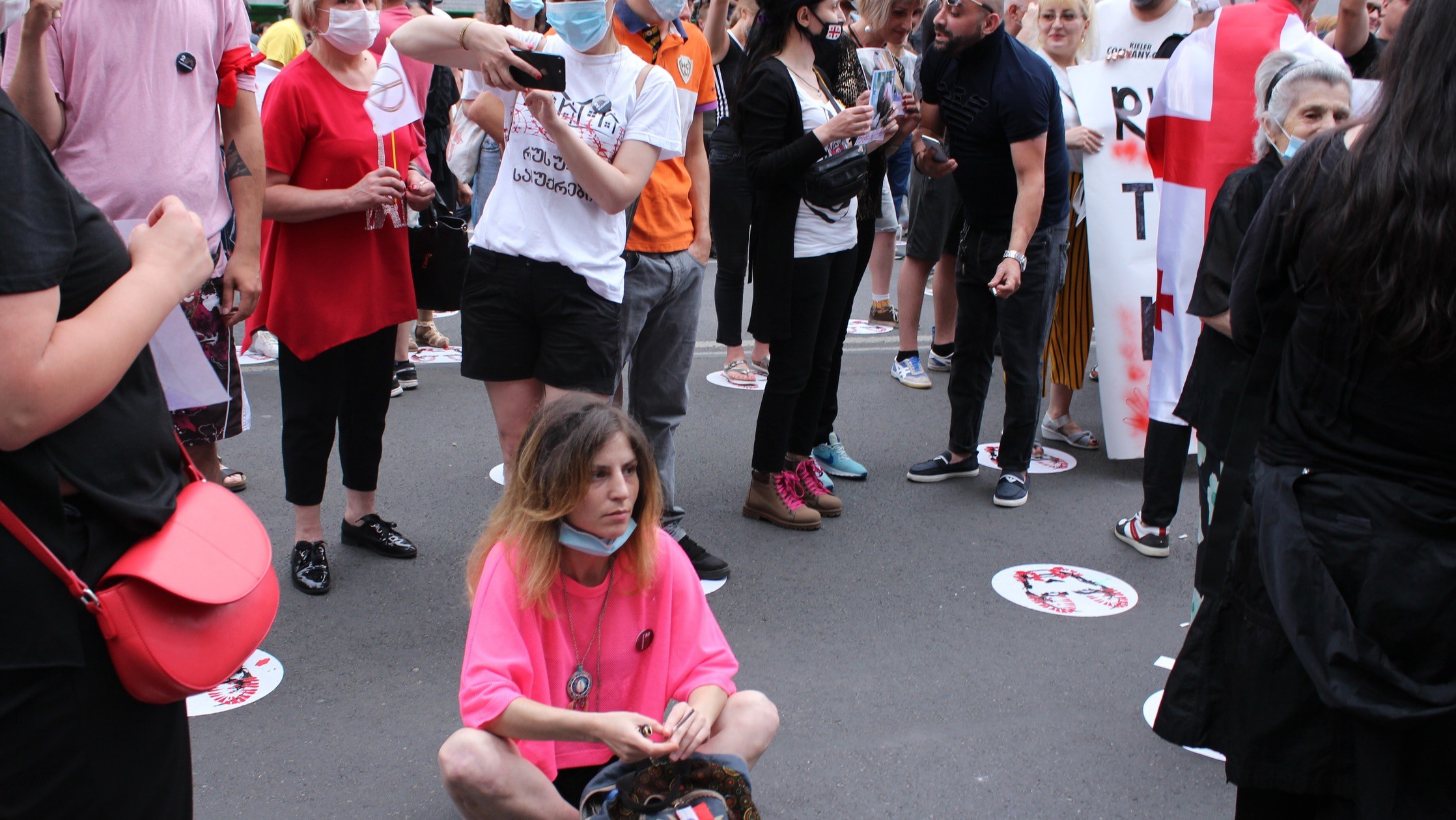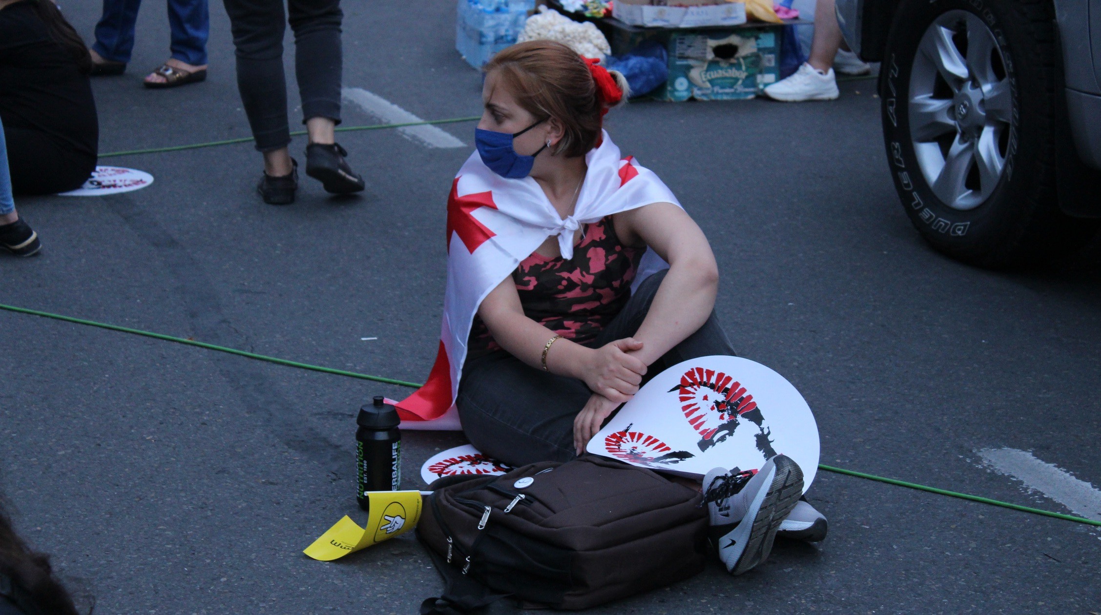 На руке между большим и указательным пальцами татуировка с надписью "Грузия" и изображением контура ее границ