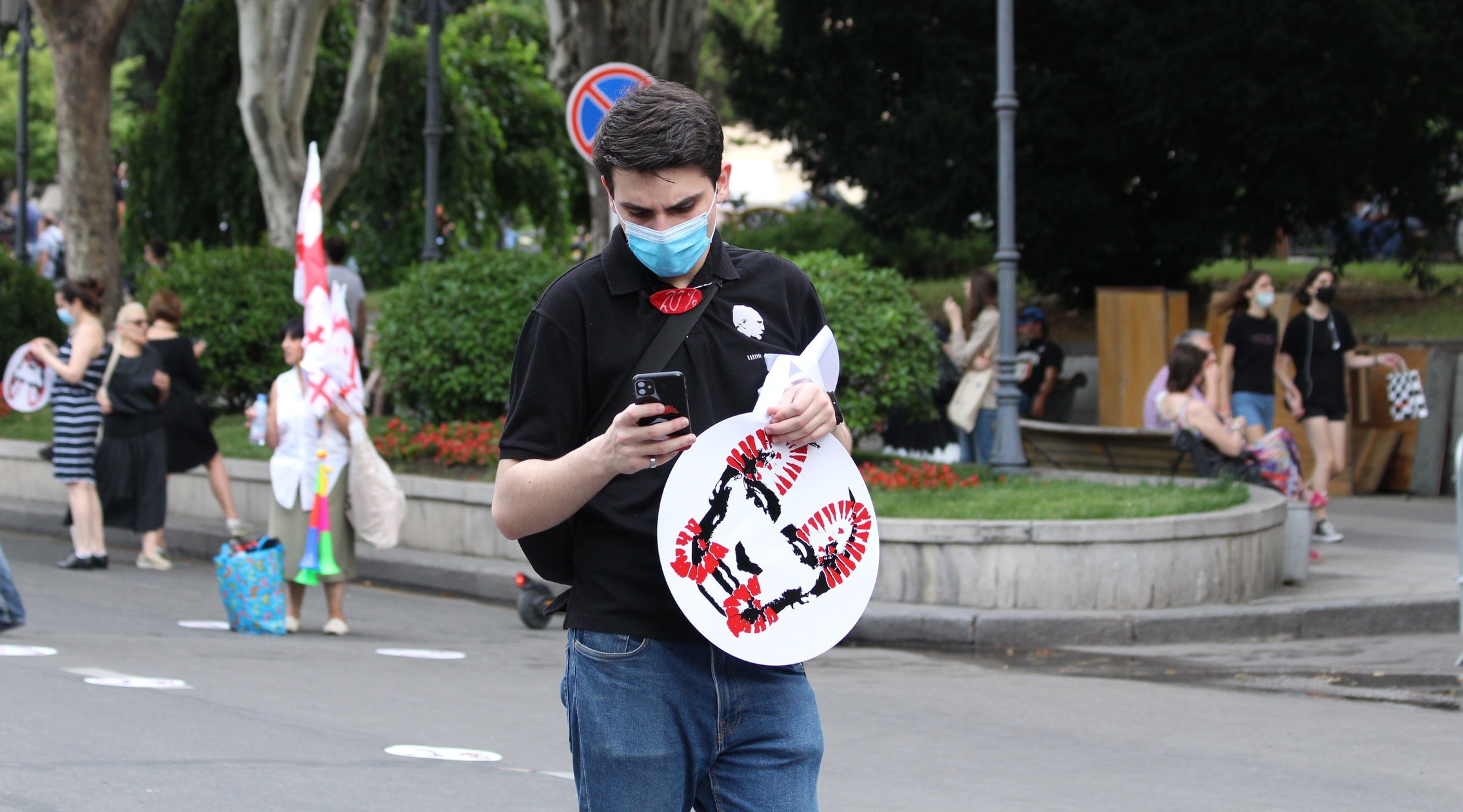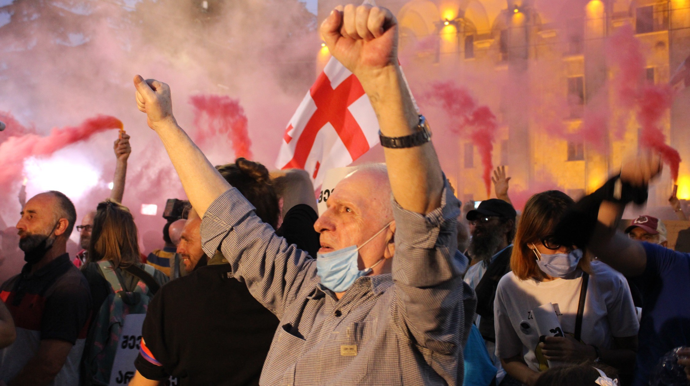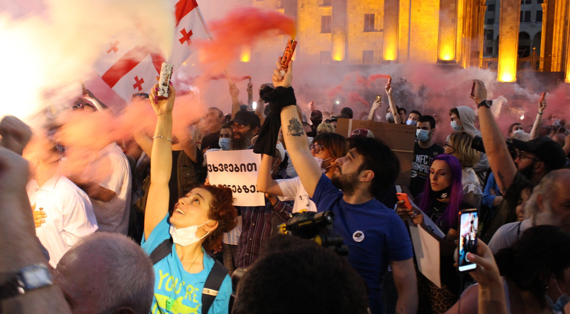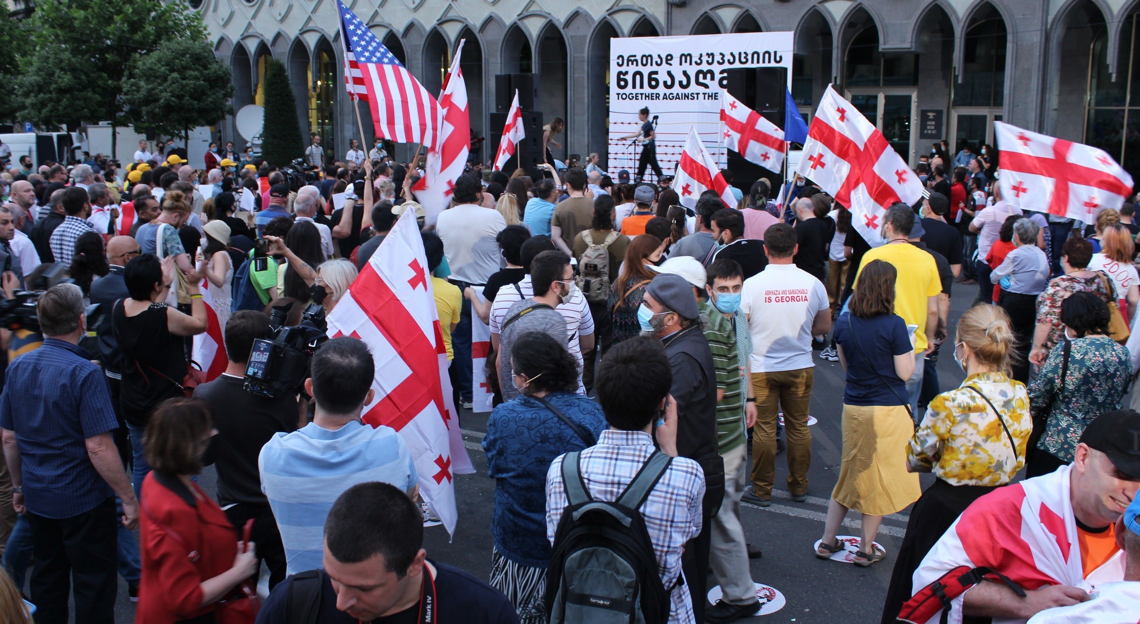 На руке между большим и указательным пальцами татуировка с надписью "Грузия" и изображением контура ее границ