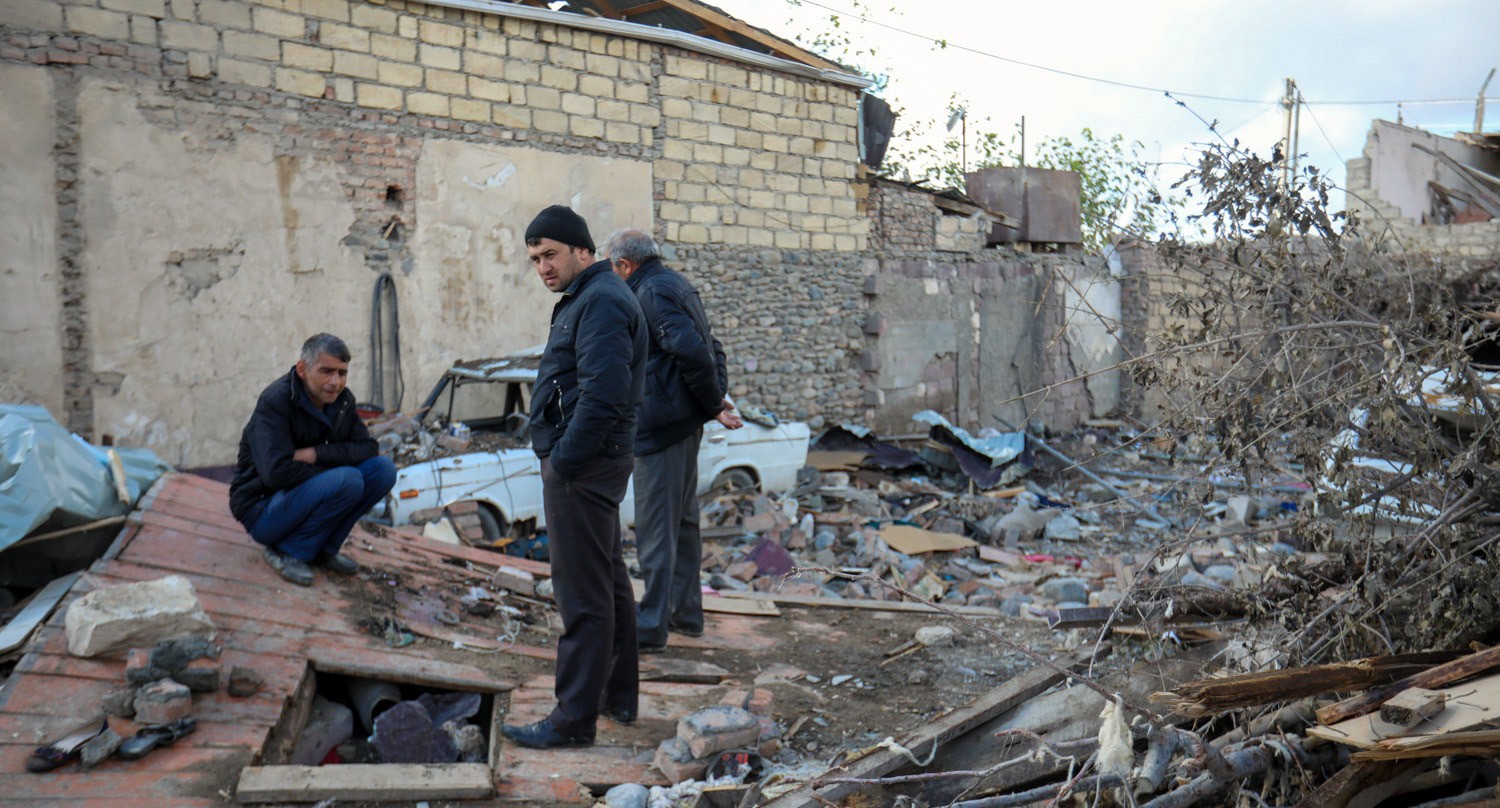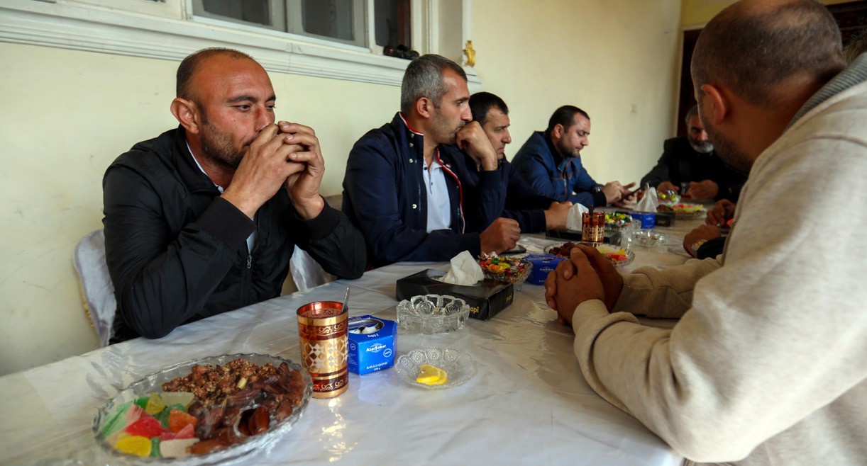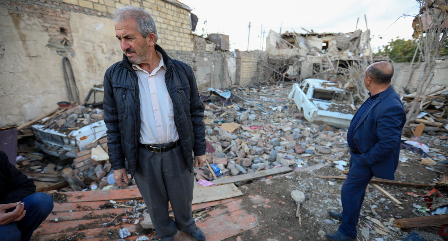 Теймур Аскеров, потерявший пятерых близких, едва сдерживает слезы.