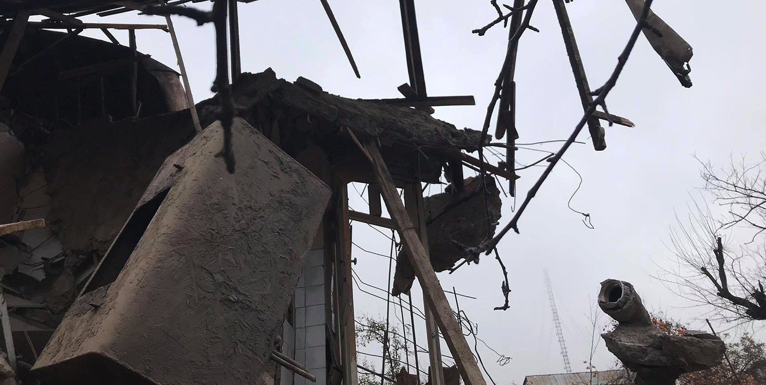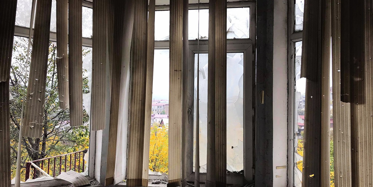 Один из жилых домов Степанакерта после попадания ракеты. До войны планировалось, что в нем разместится ясли-сад для детей с особыми потребностями.
