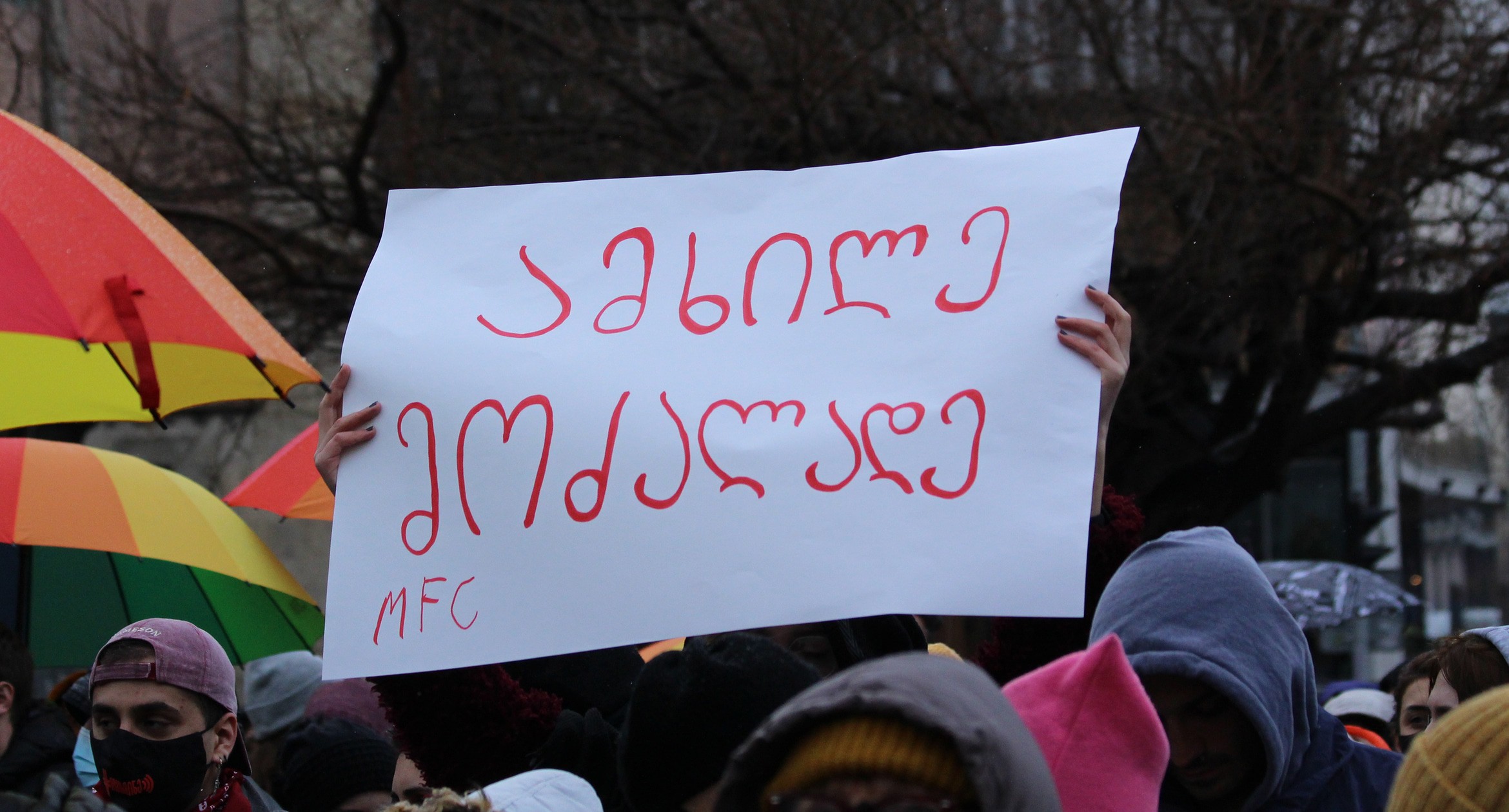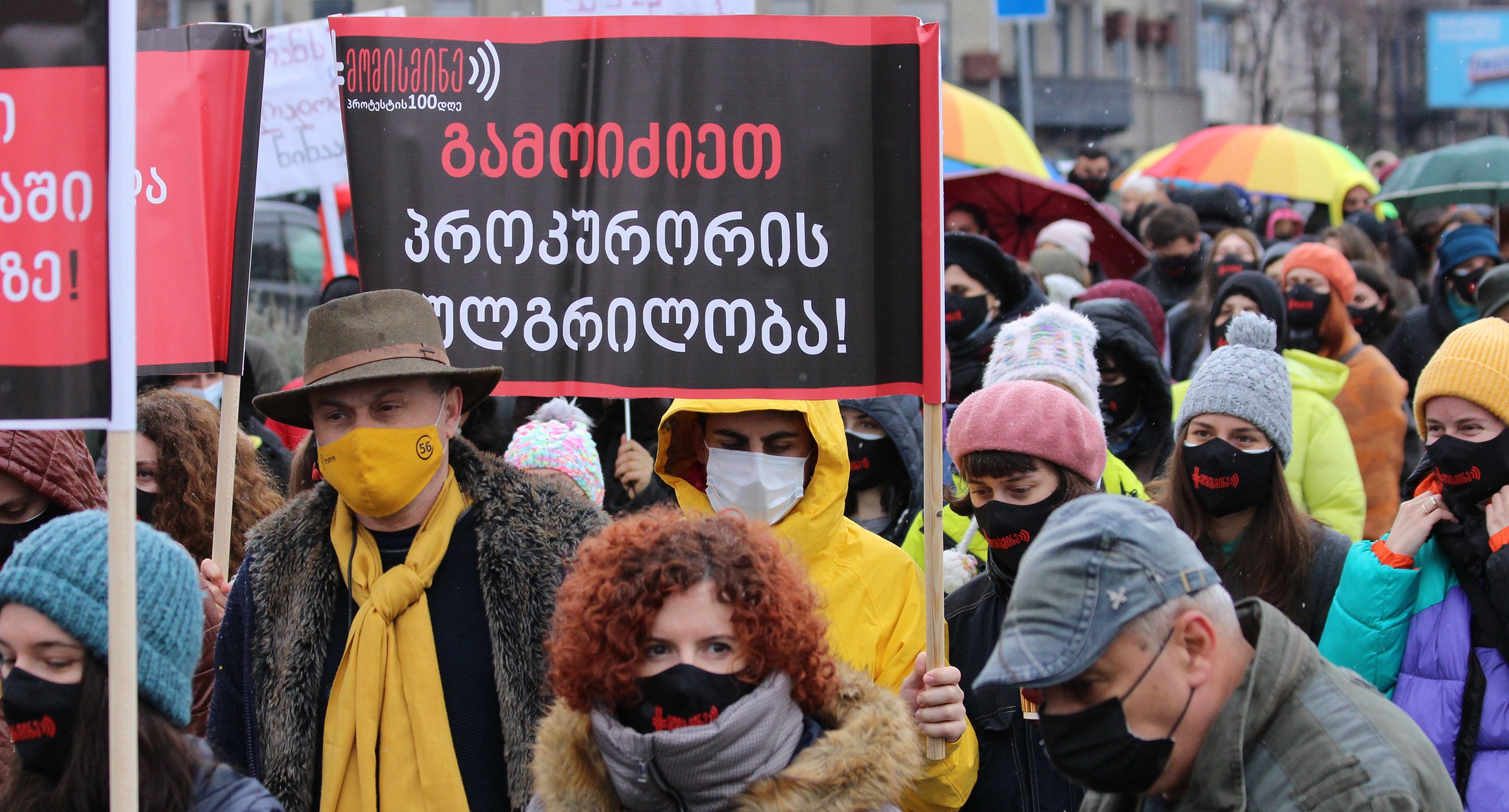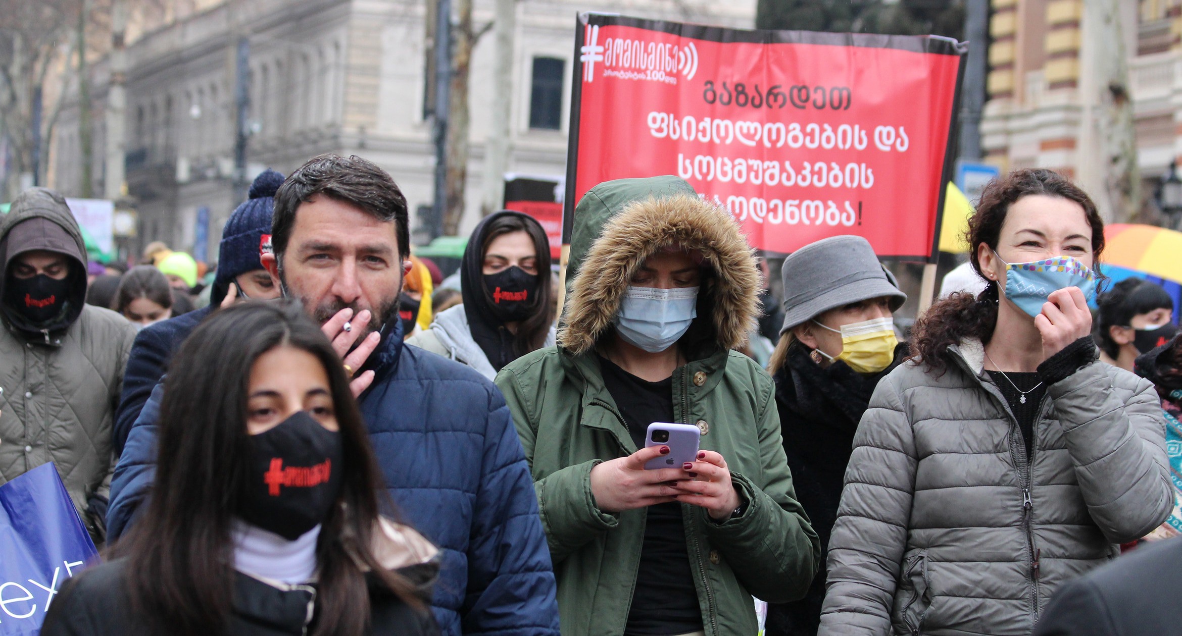 Акция в Тбилиси началась с шествия по центральному проспекту Руставели и завершилась перед зданием администрации правительства Грузии