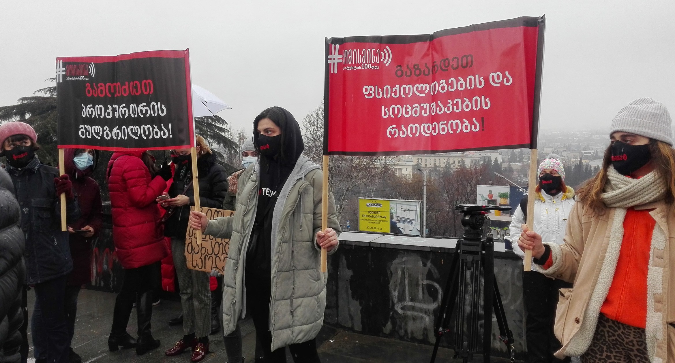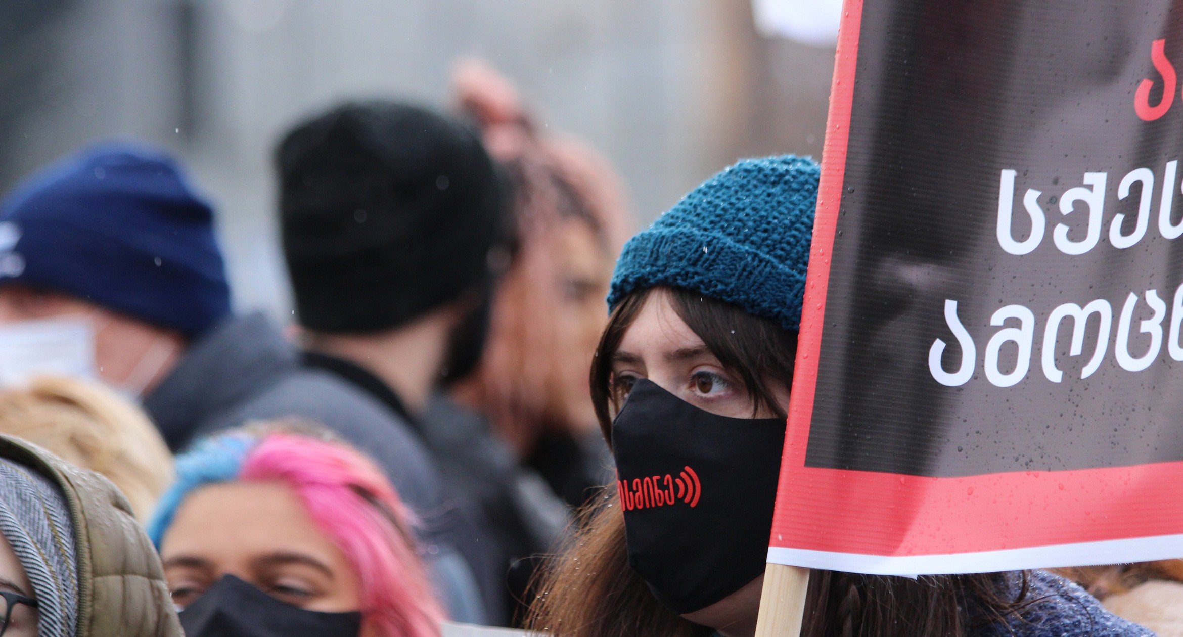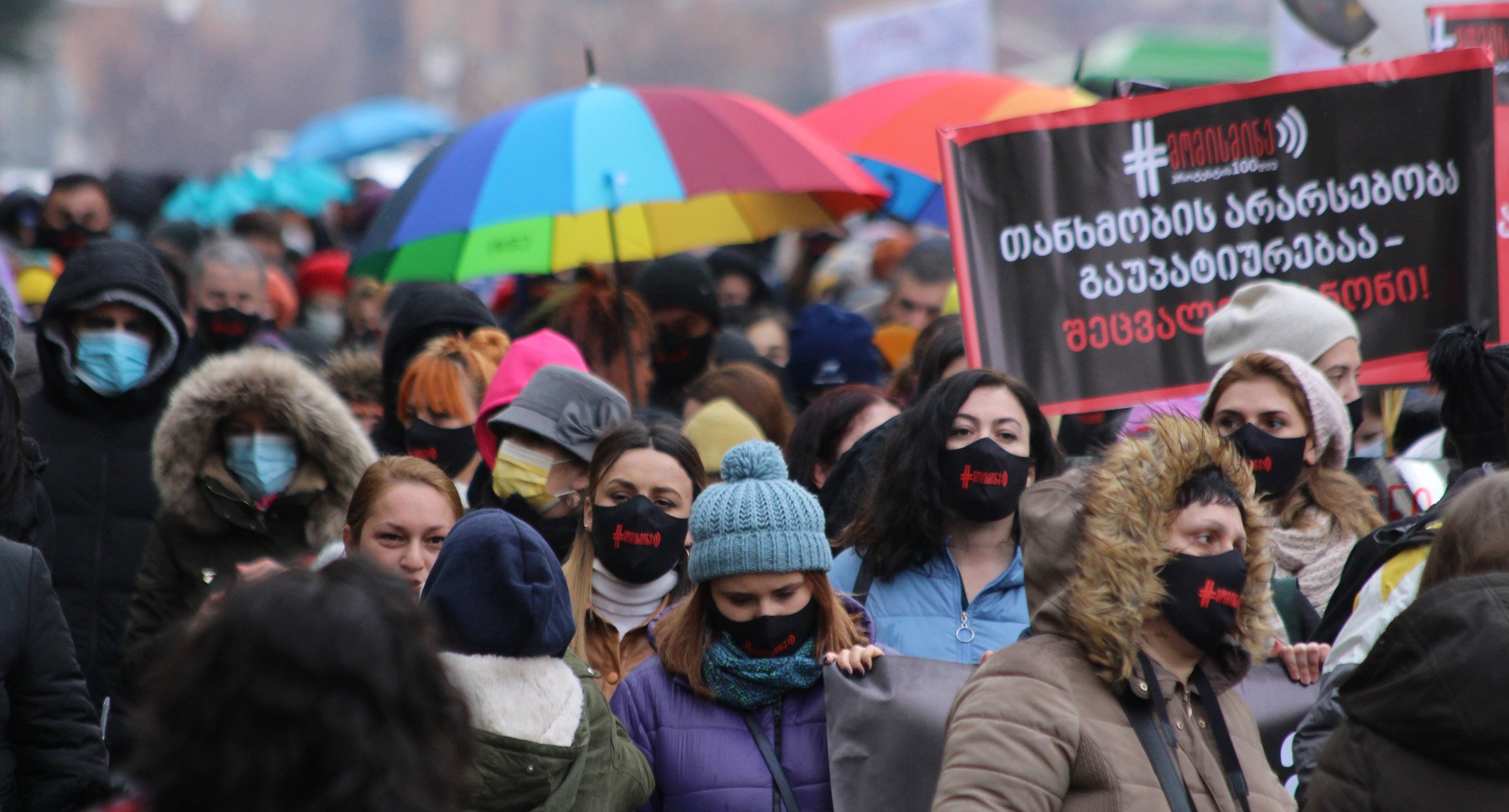 Акция в Тбилиси началась с шествия по центральному проспекту Руставели и завершилась перед зданием администрации правительства Грузии