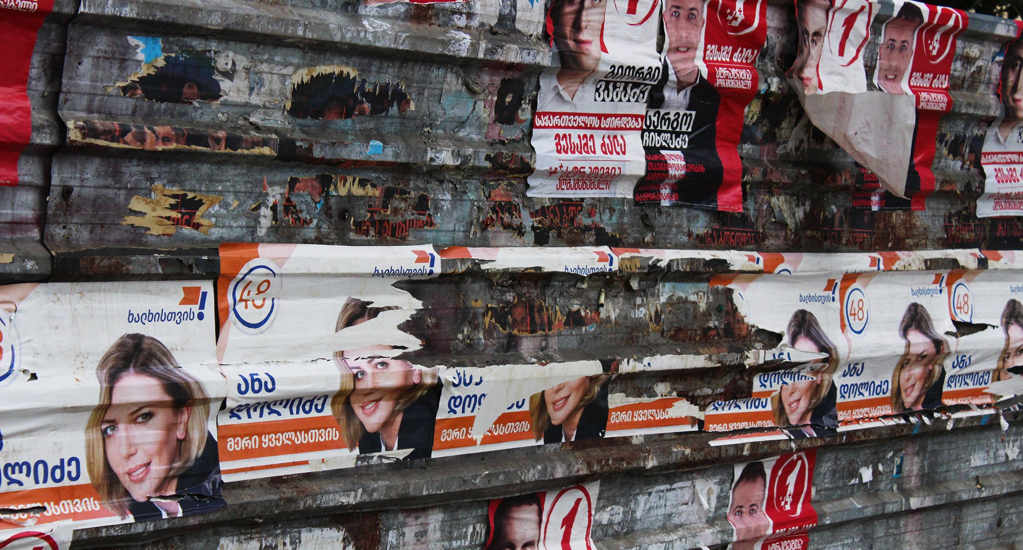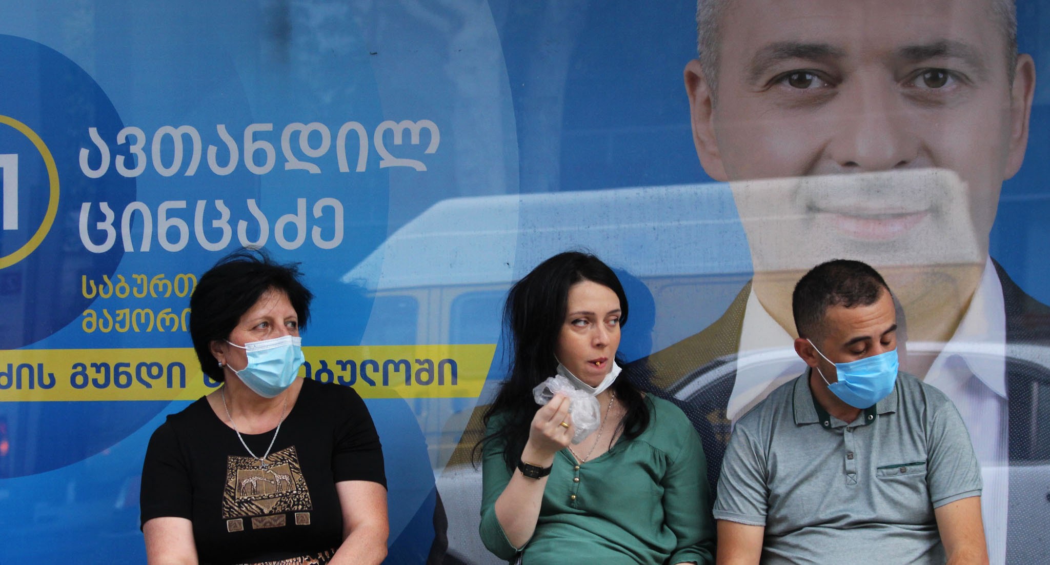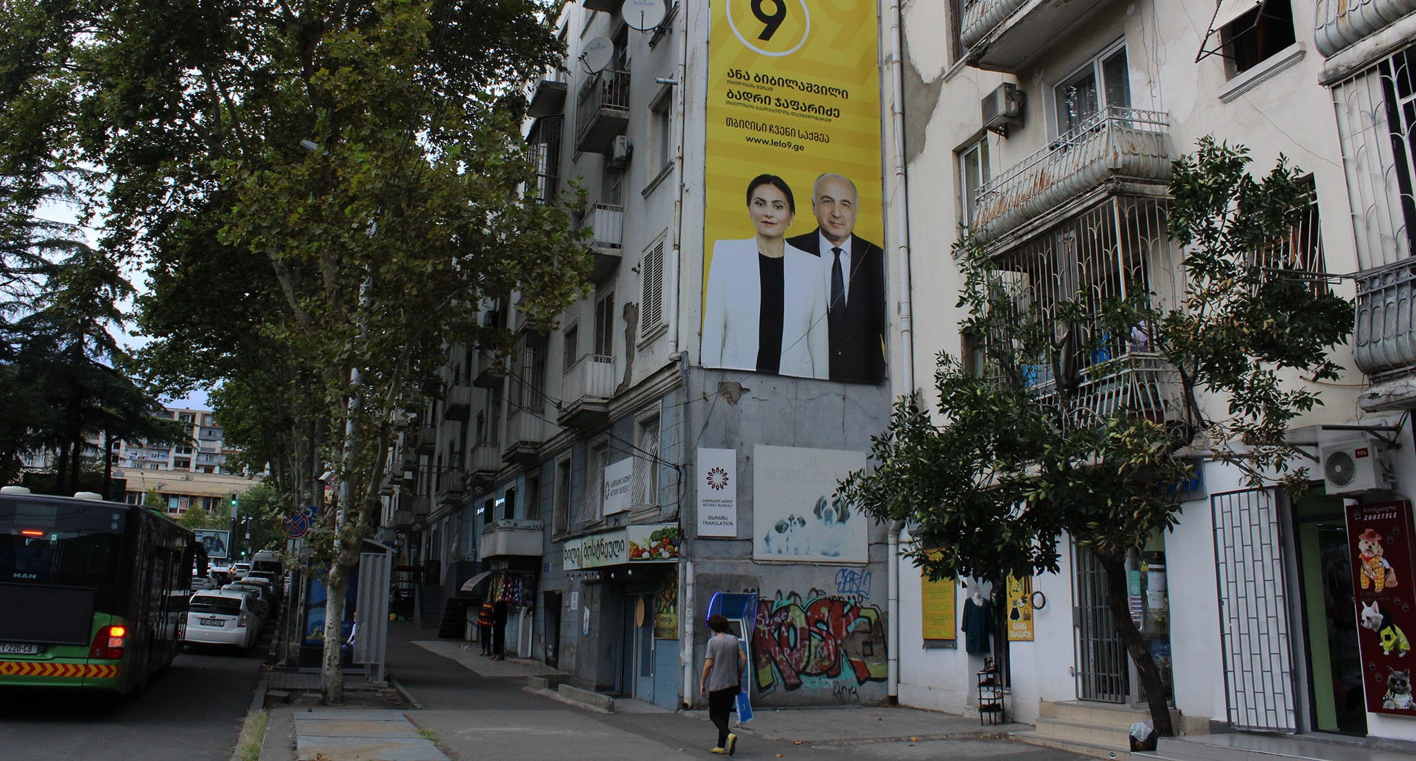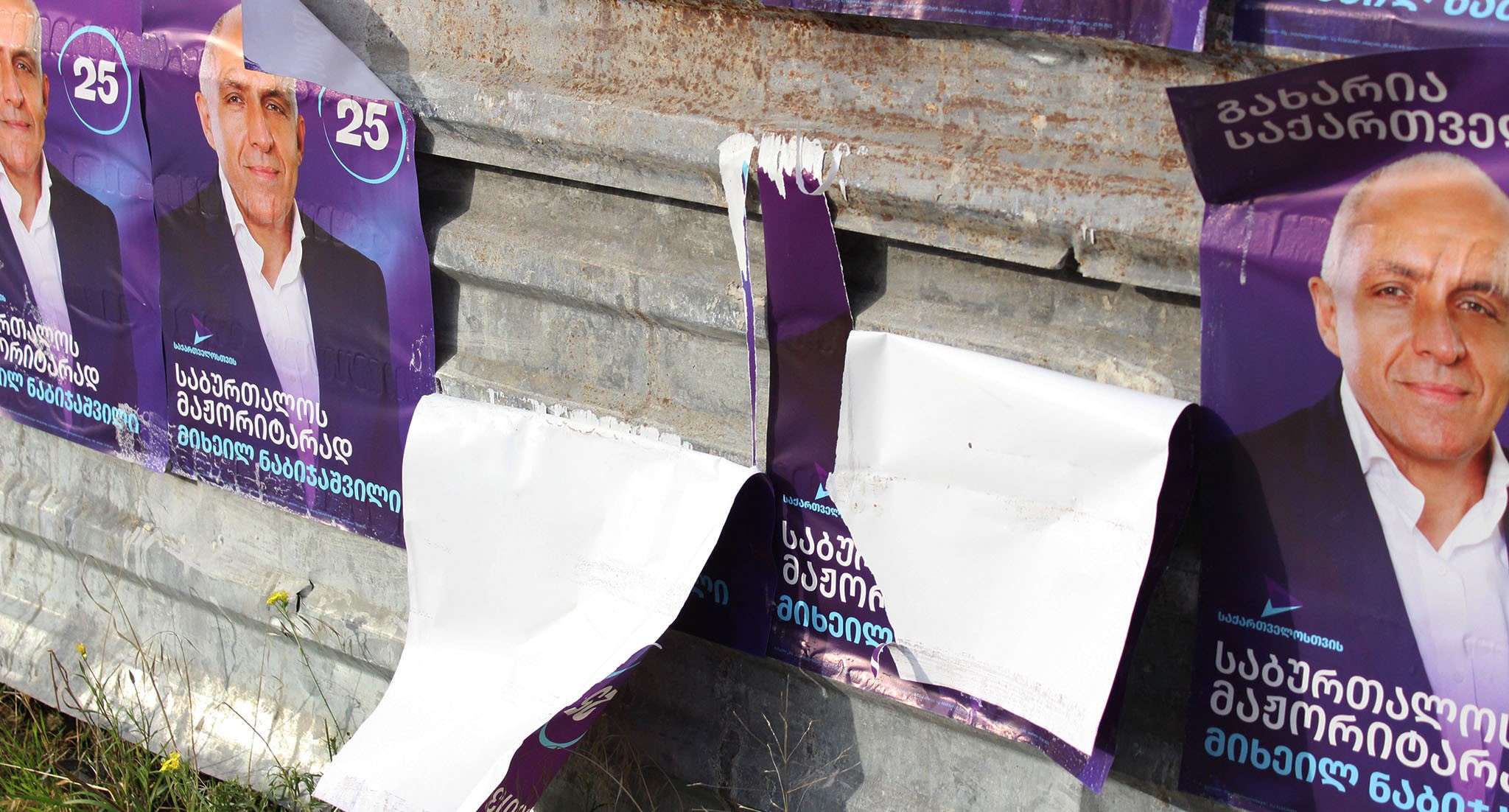 На баннере с "кровавыми пятнами" и фотографиями оппозиционных политиков и журналистов из прооппозиционных СМИ кто-то написал красной краской: "Цирк"