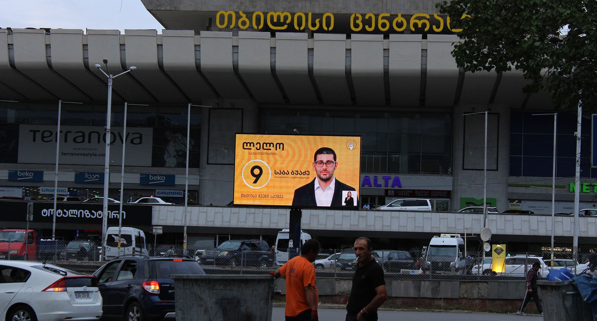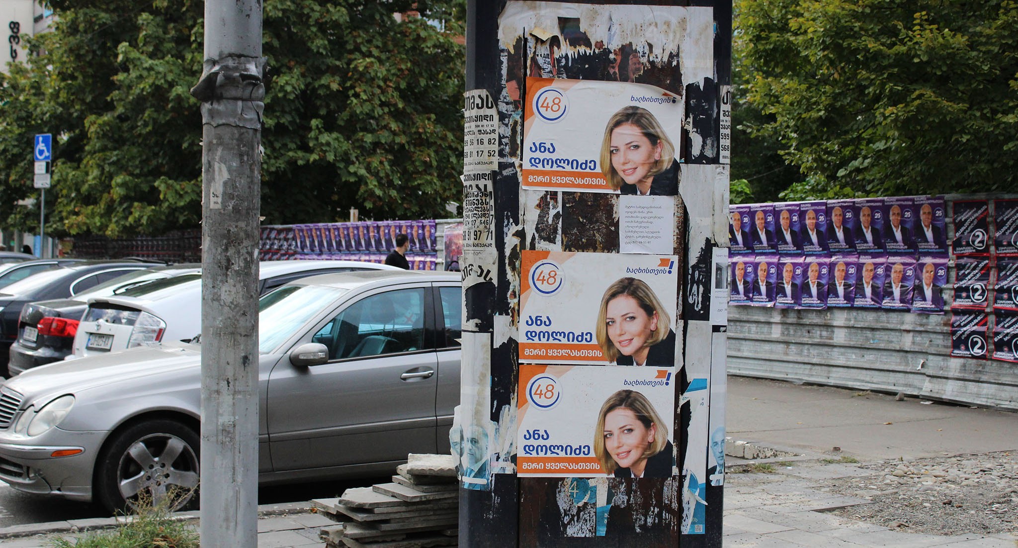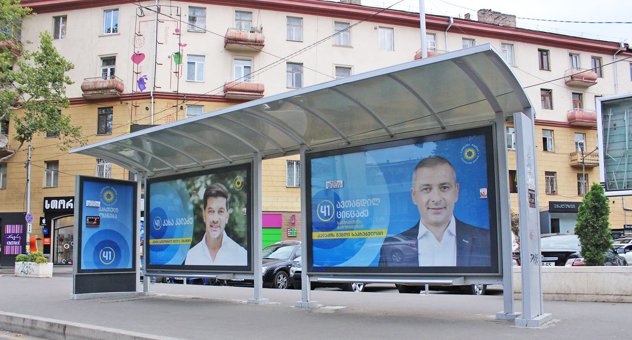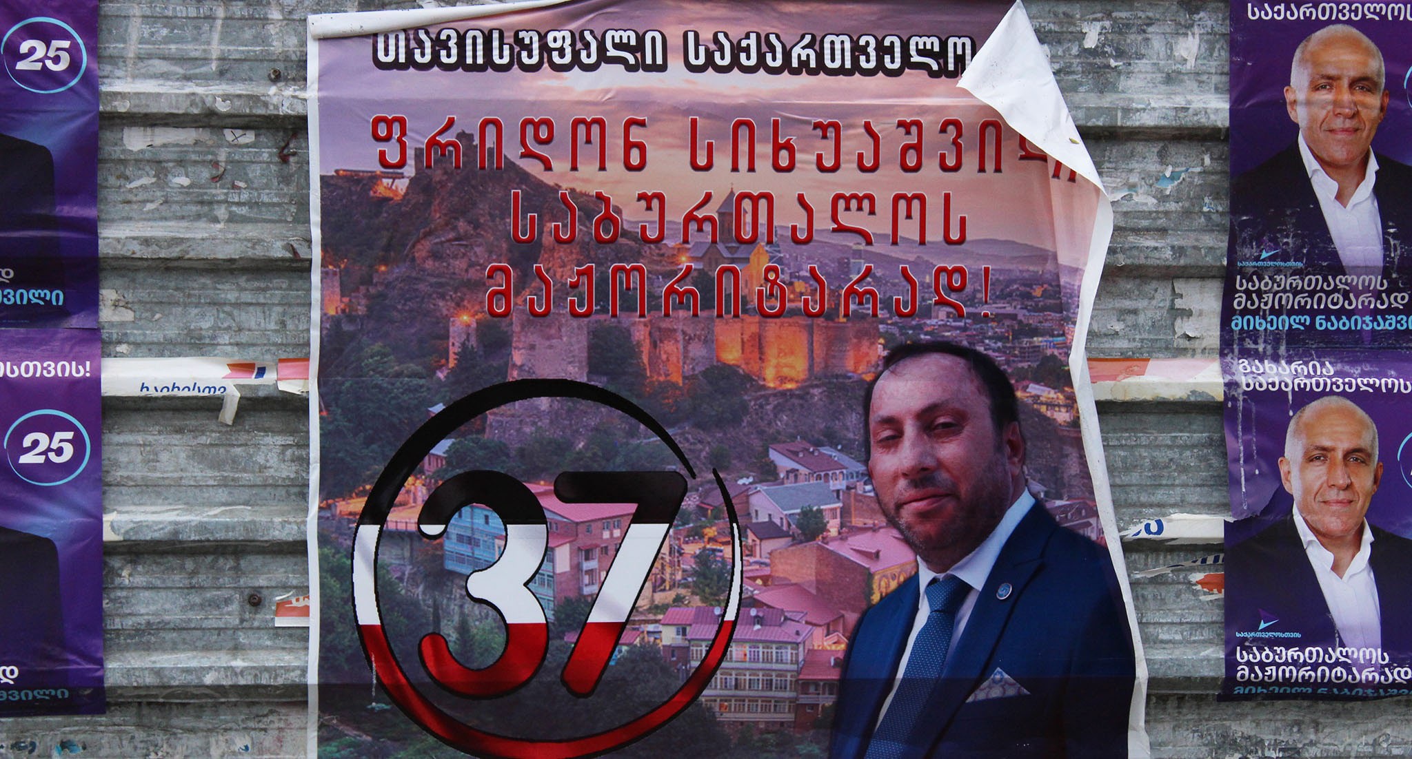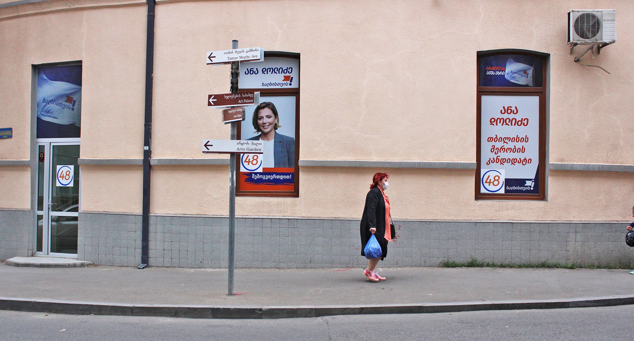 На баннере с "кровавыми пятнами" и фотографиями оппозиционных политиков и журналистов из прооппозиционных СМИ кто-то написал красной краской: "Цирк"