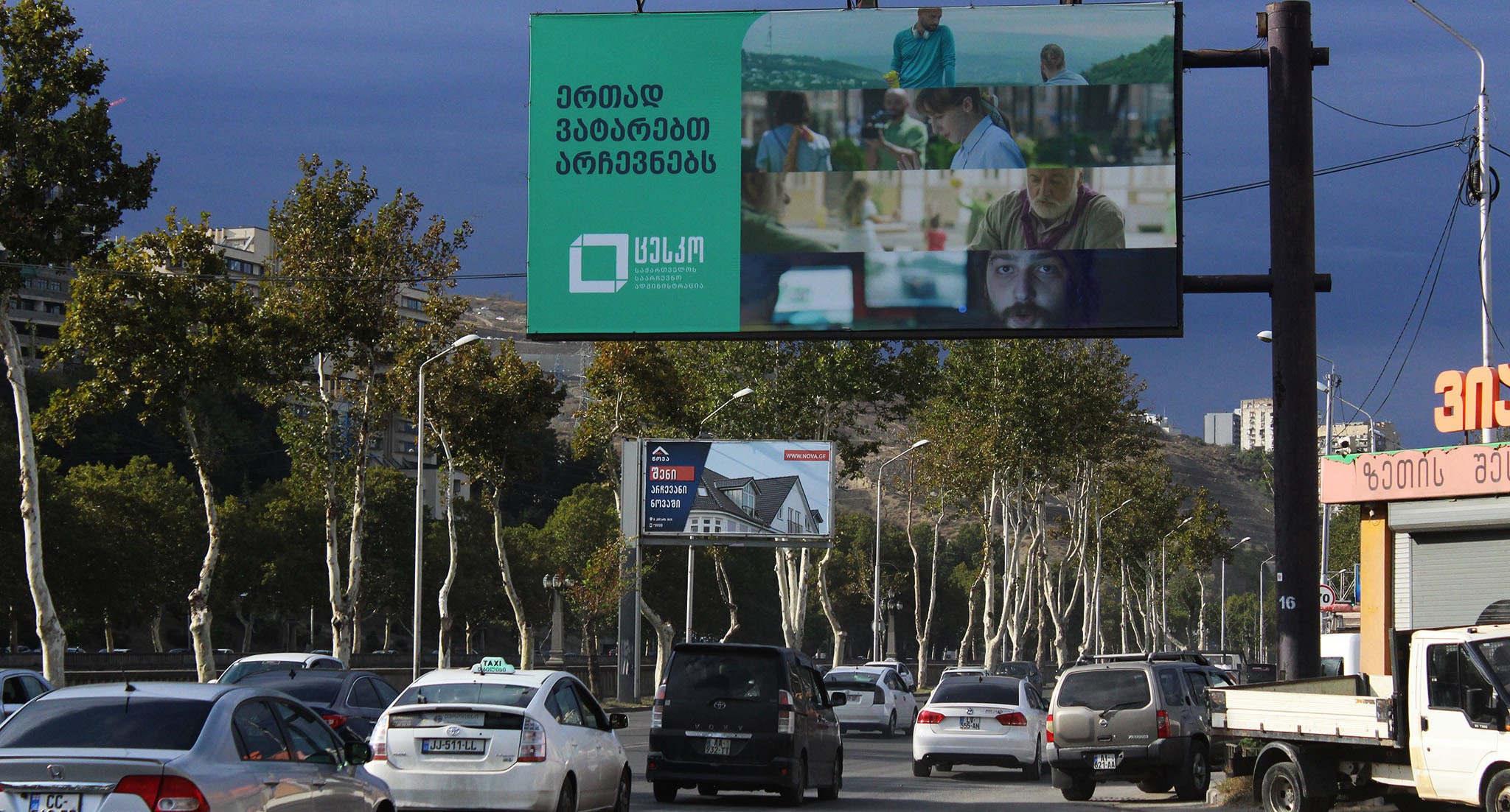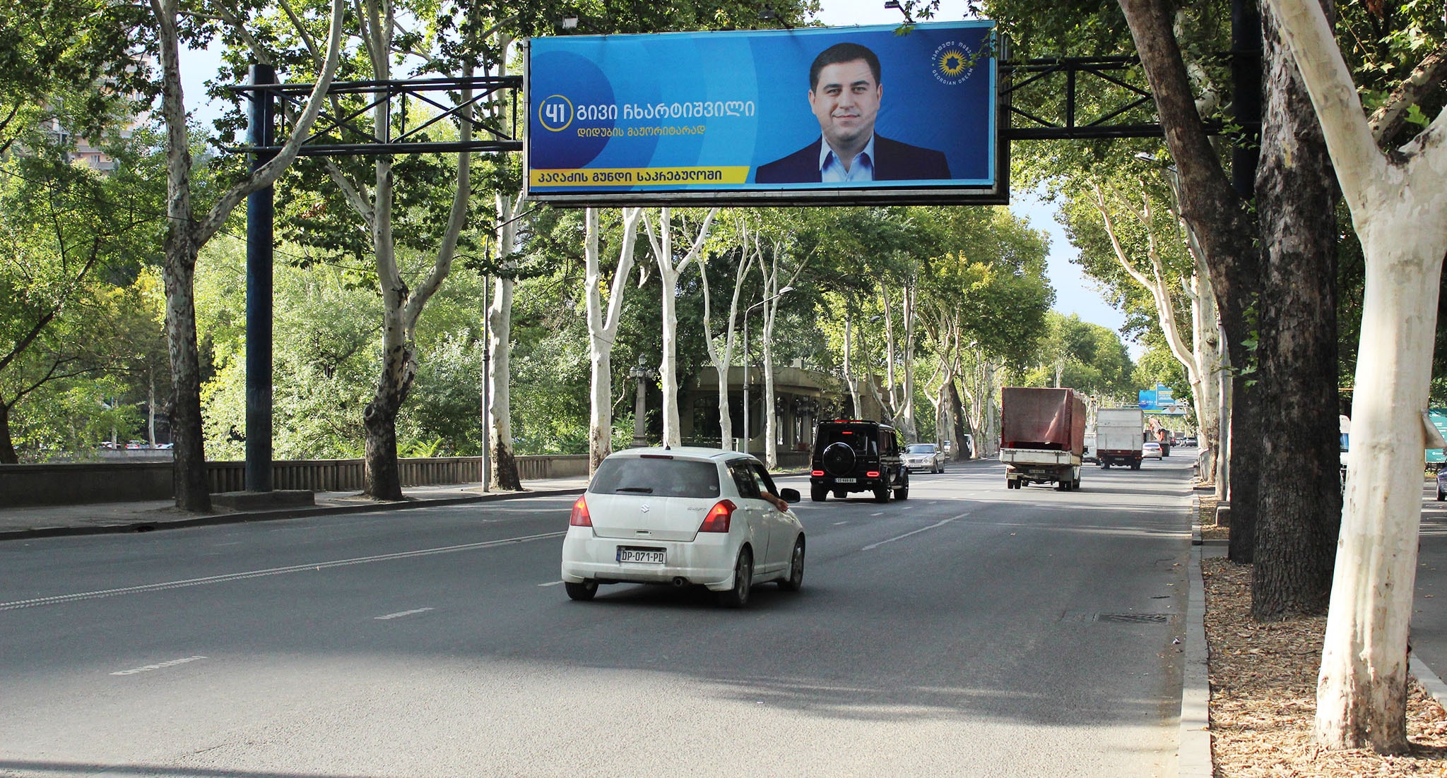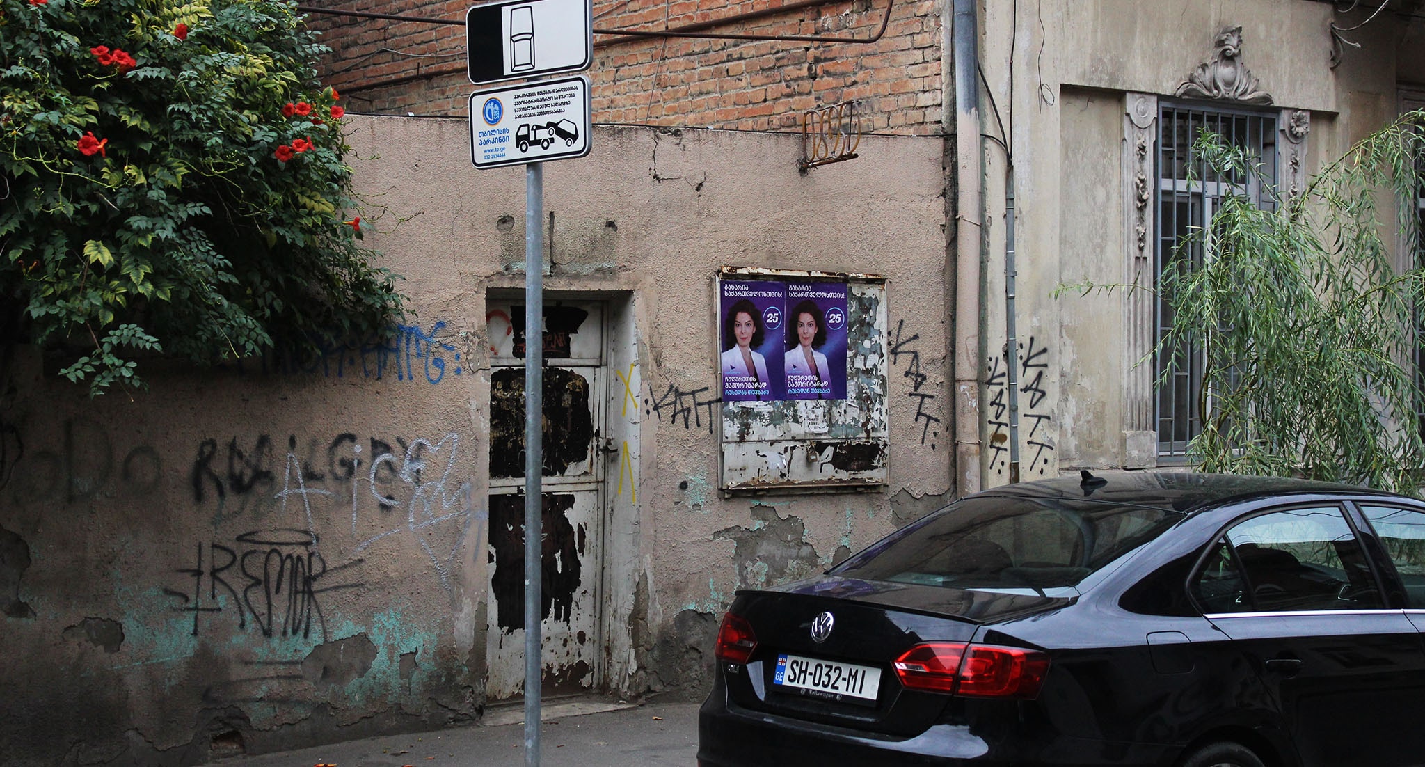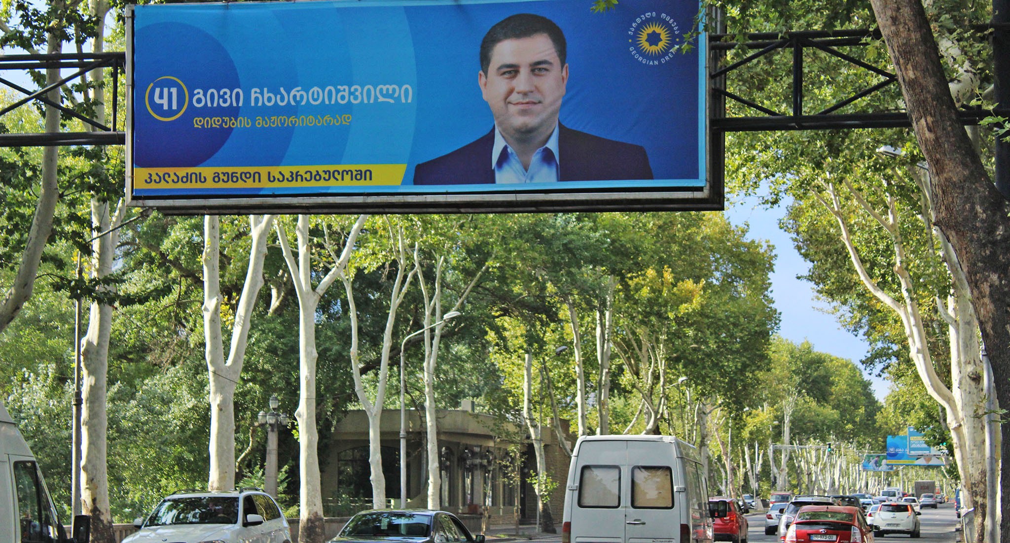 На баннере с "кровавыми пятнами" и фотографиями оппозиционных политиков и журналистов из прооппозиционных СМИ кто-то написал красной краской: "Цирк"