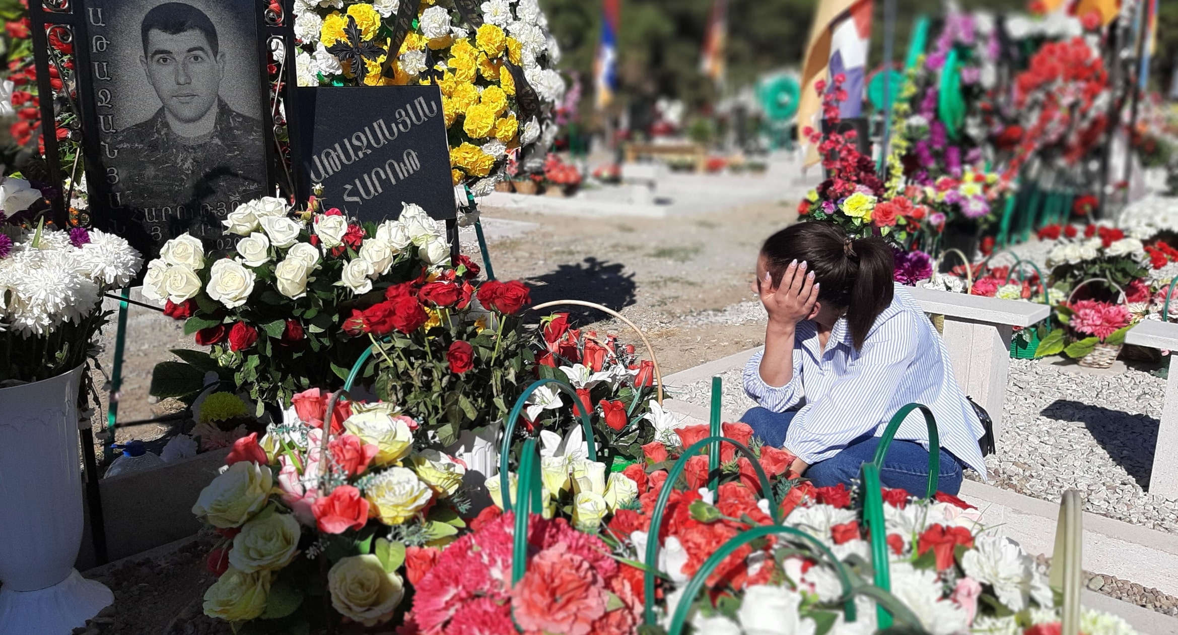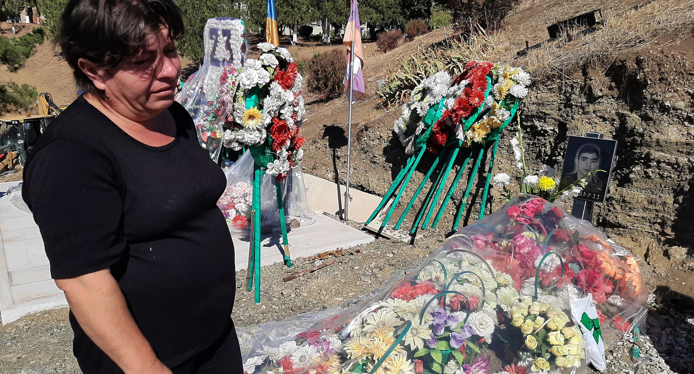 Мать у могилы сына-военного