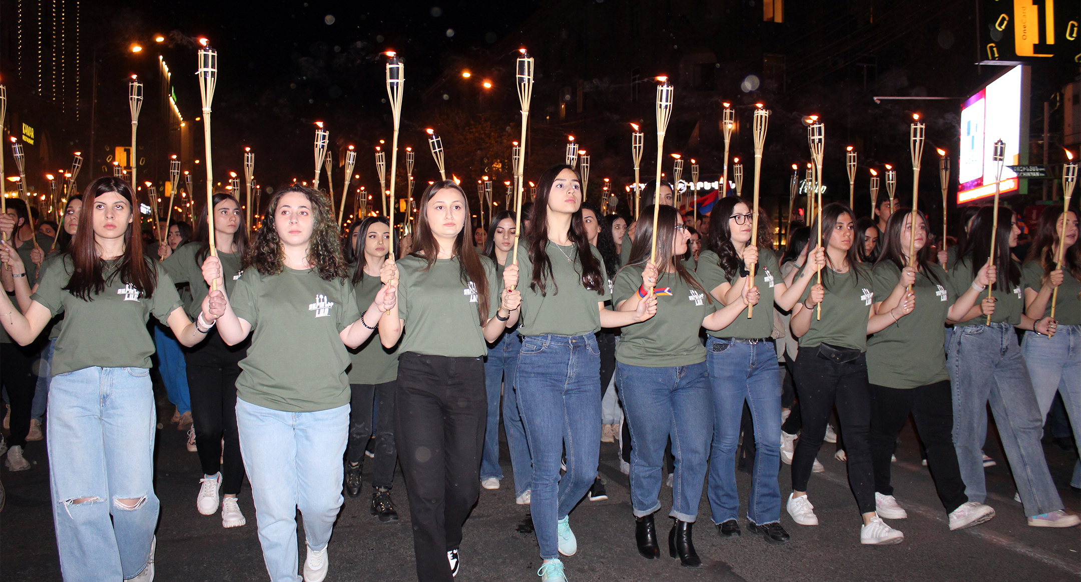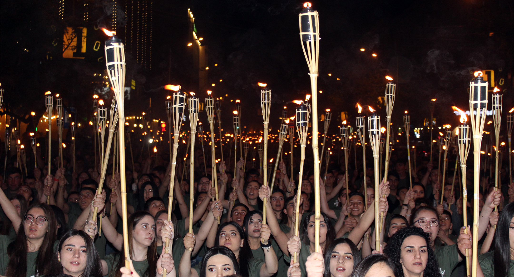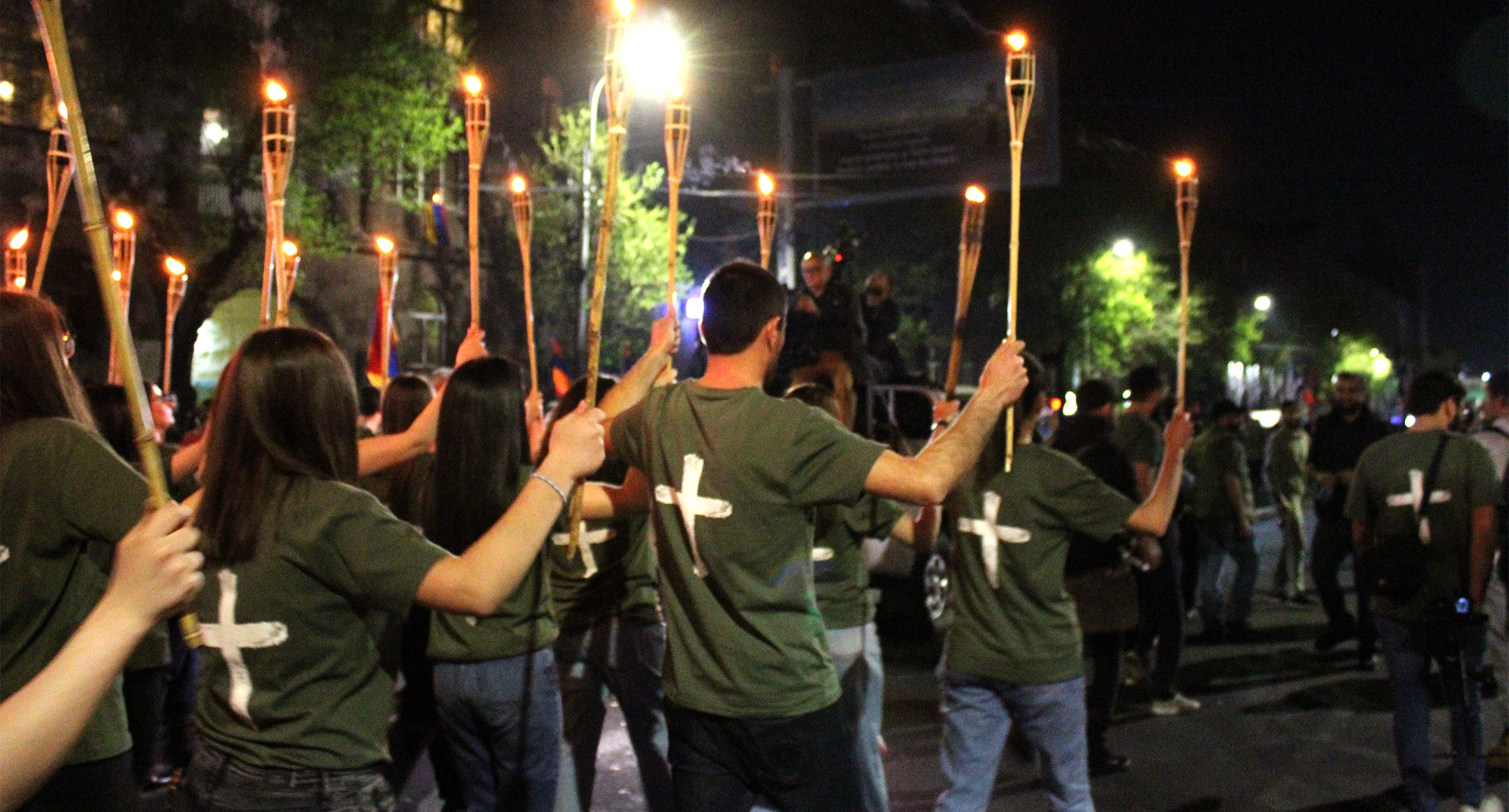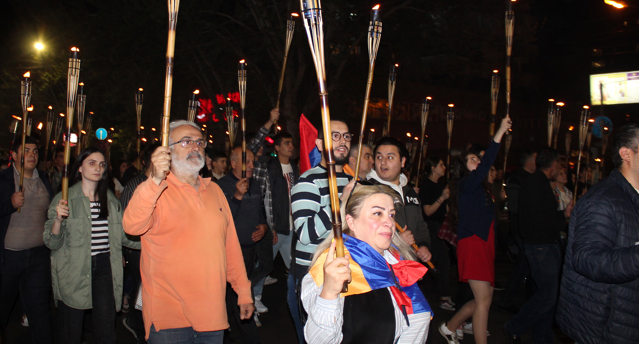 Участники факельного шествия