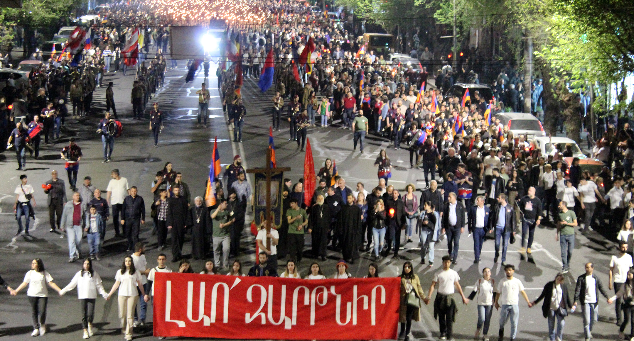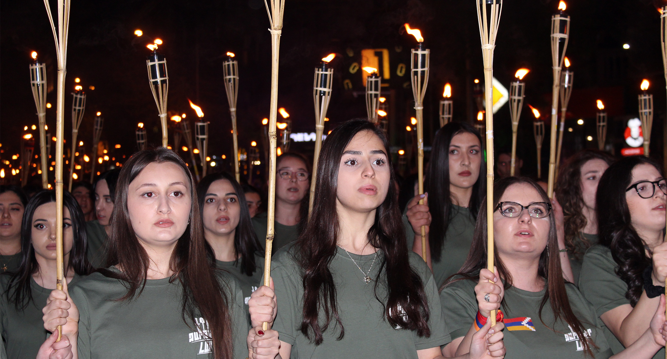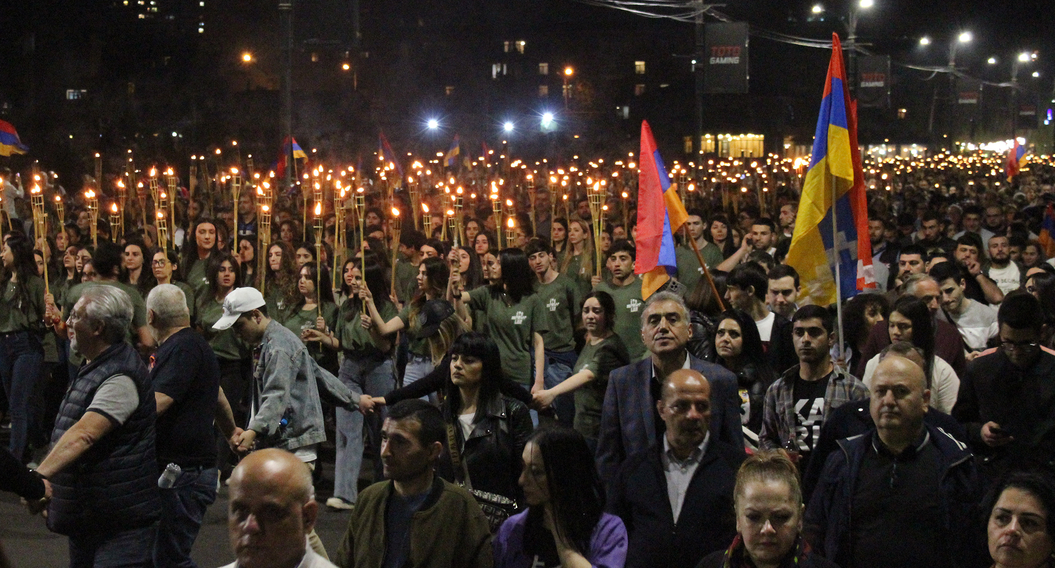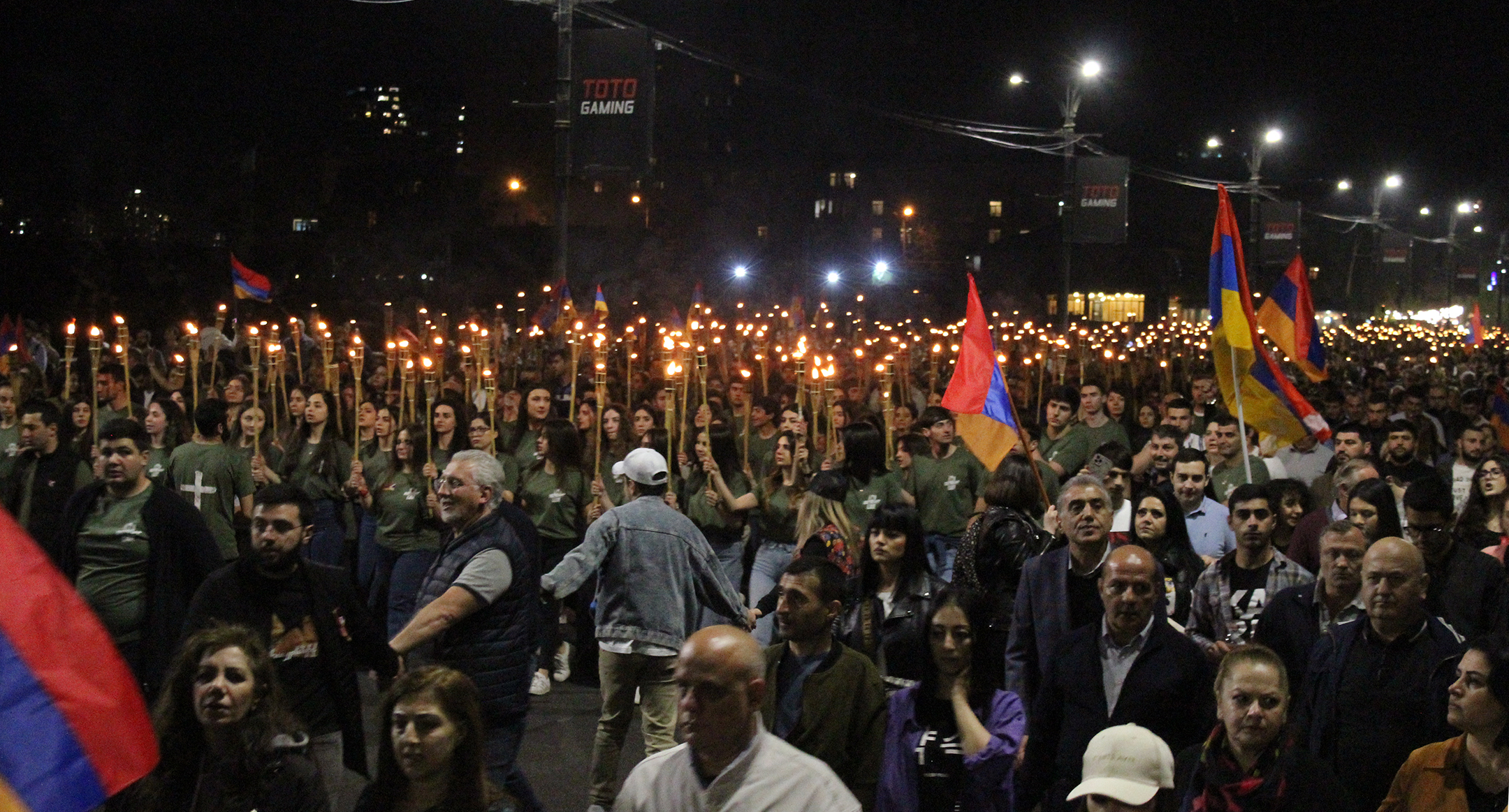 Участники факельного шествия