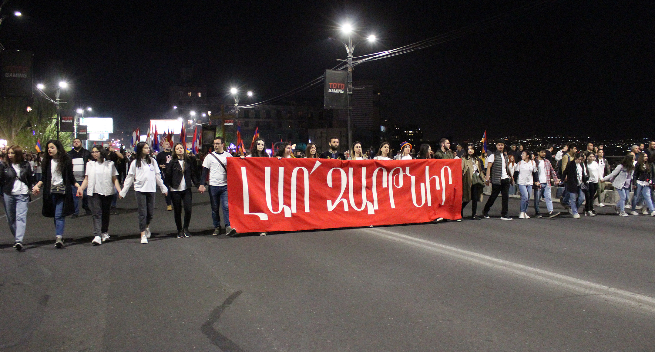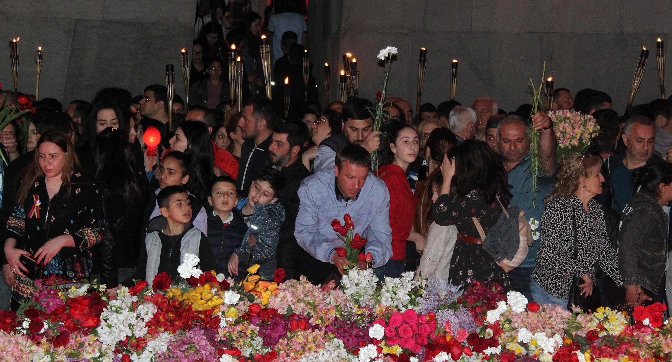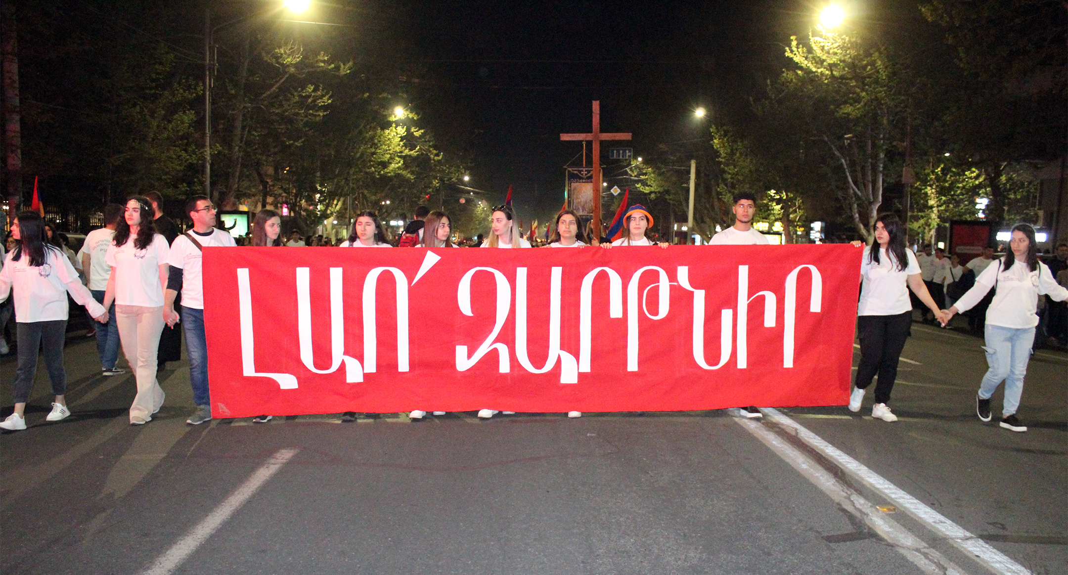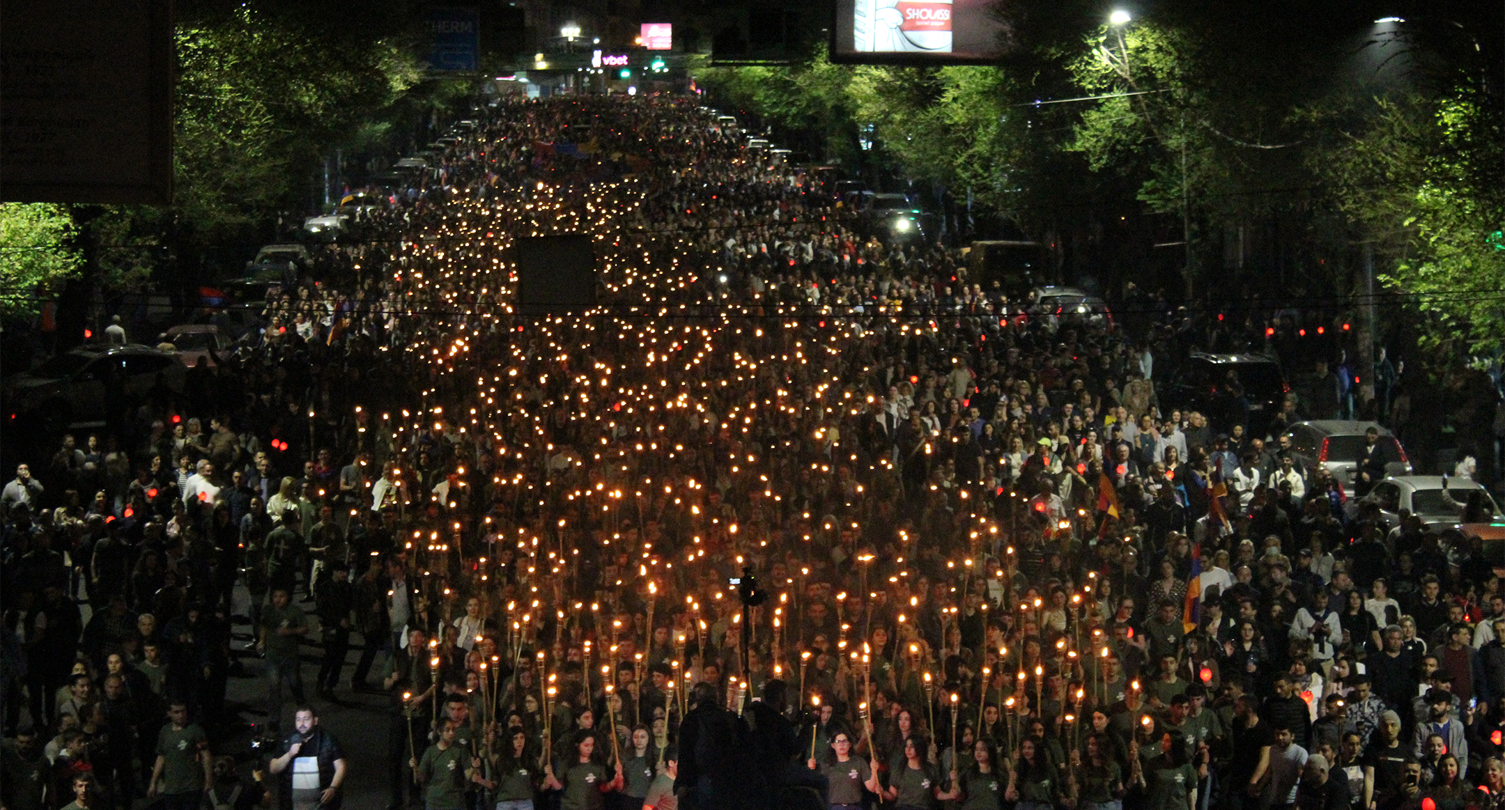 Участники факельного шествия