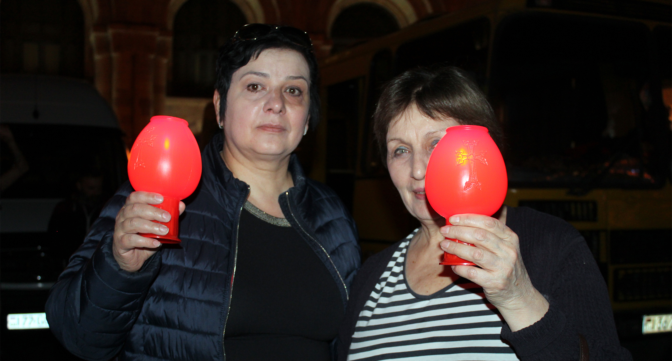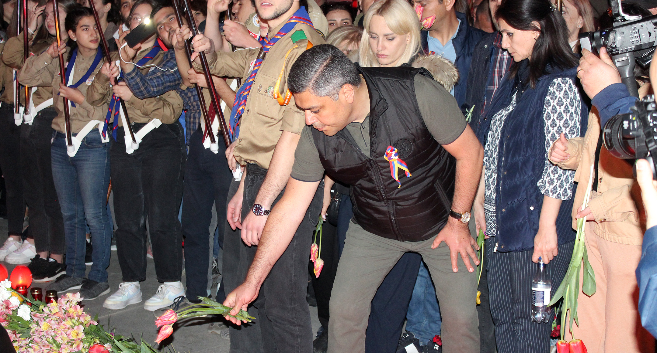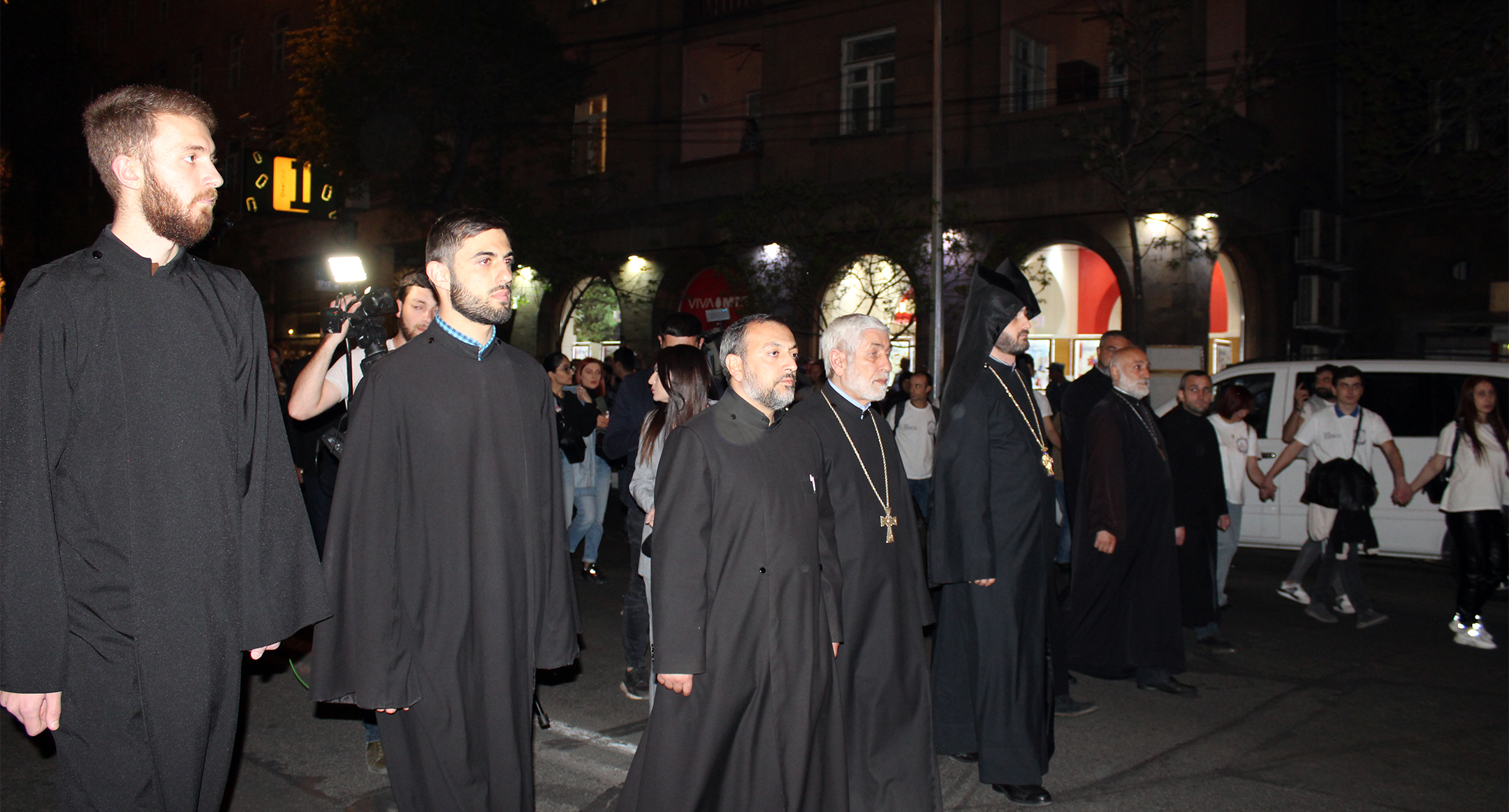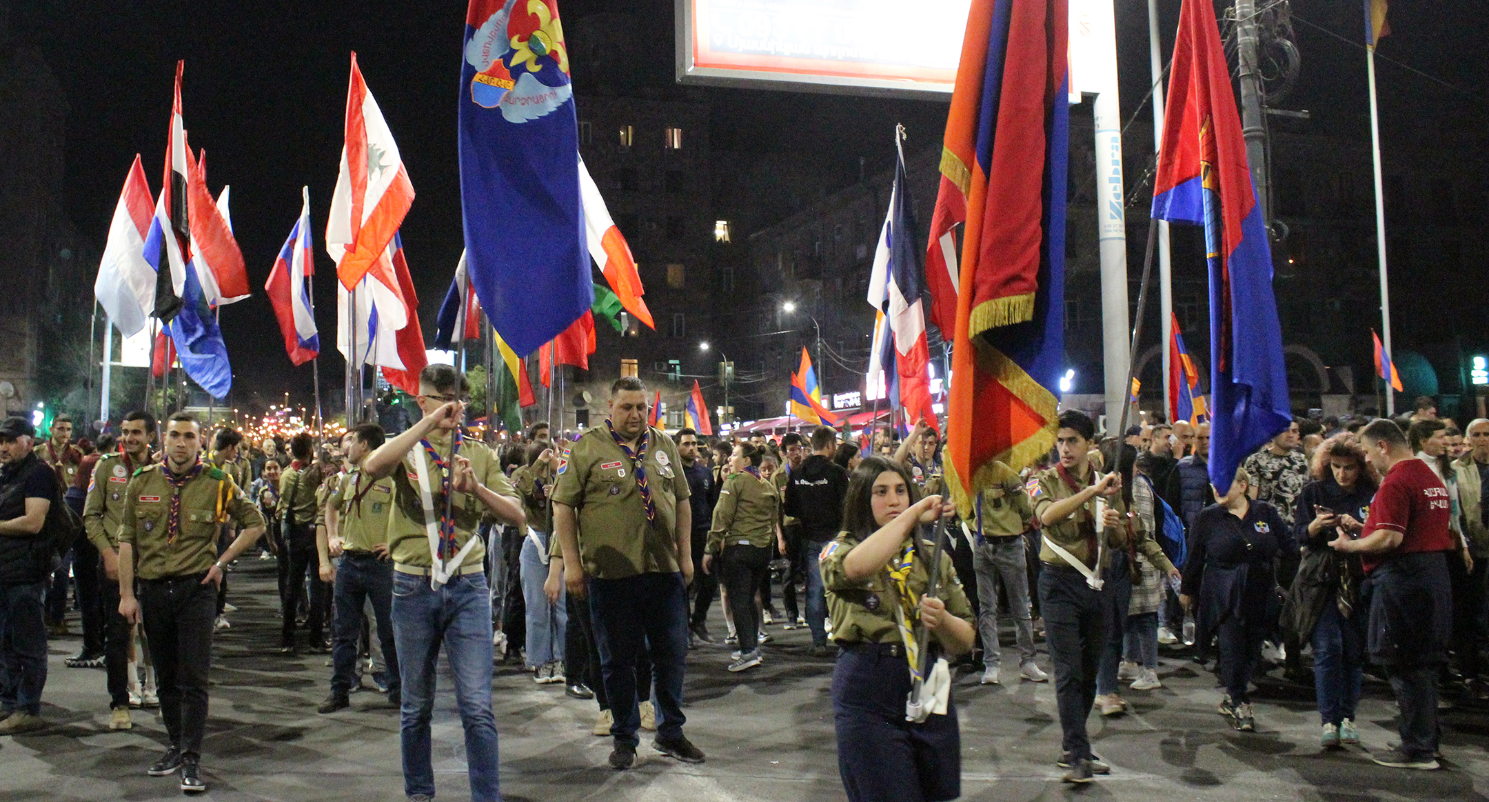 Участники факельного шествия