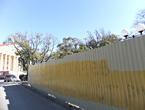 Строительные заборы на Приморской набережной в парковой зоне возле Зимнего театра и гостиницы «Приморская». Сочи, 21 марта 2012 г. Фотокорреспондент «Кавказского узла» Светлана Кравченко