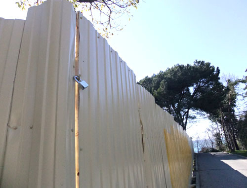 Строительные заборы на Приморской набережной в парковой зоне возле Зимнего театра и гостиницы «Приморская». Сочи, 21 марта 2012 г. Фоторепортаж корреспондента «Кавказского узла» Светланы Кравченко