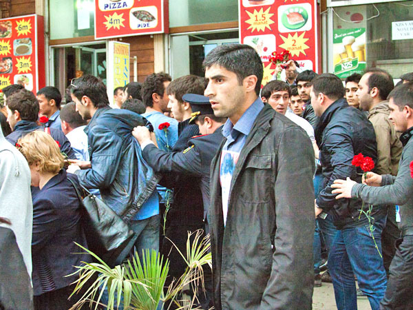 В Баку полиция пресекла акцию поминовения перед зданием Нефтяной академии. Баку, 30 апреля 2012 г. Фоторепортаж корреспондента "Кавказского узла" Азиза Каримова