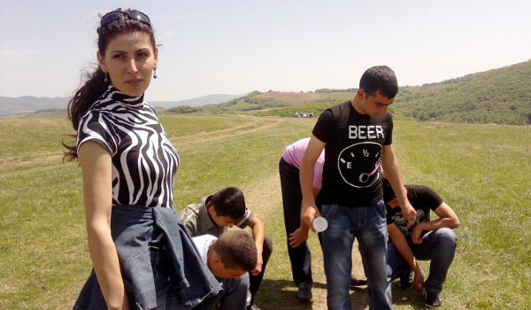 Преподаватель Степанакертского филиала Государственного аграрного университета Армении Элла Аванесян со своими студентами на субботнике