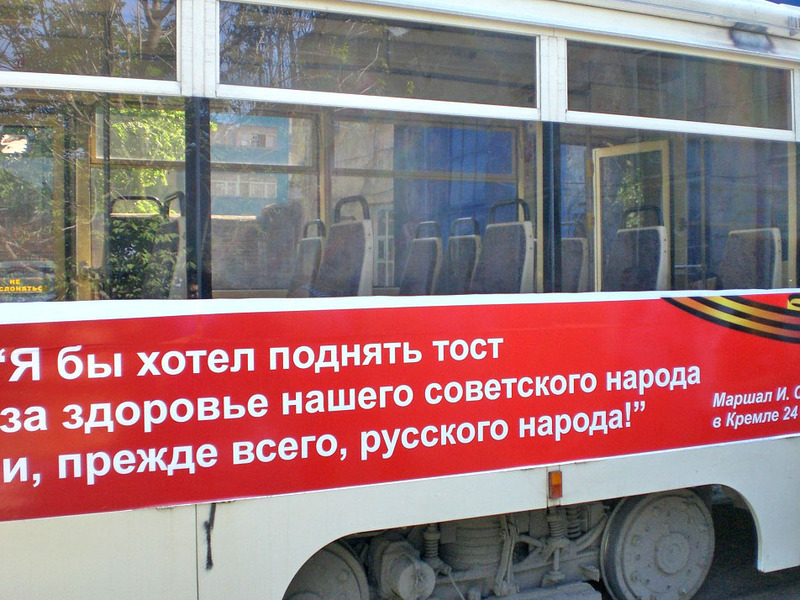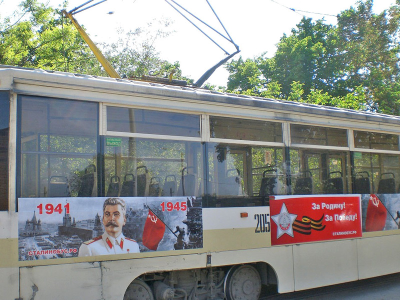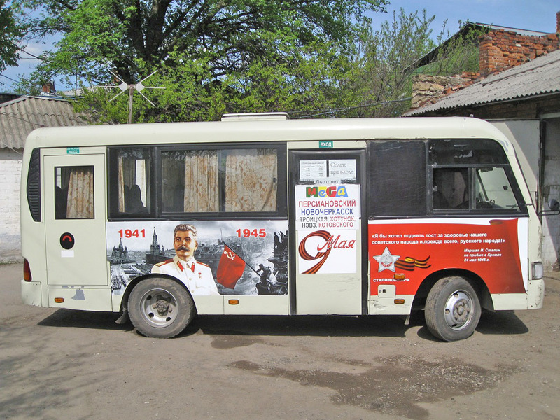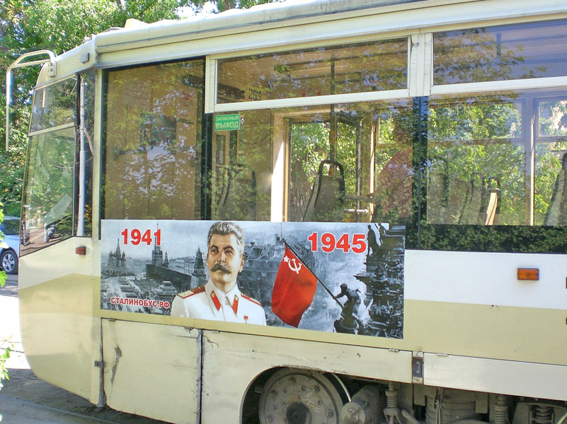 Акция "Автобус Победы - 2012", в рамках которой на общественном транспорте появилось изображение Иосифа Сталина. Новочеркасск, 25 апреля 2012 г. Фоторепортаж корреспондента "Кавказского узла" Журавлева В.А.