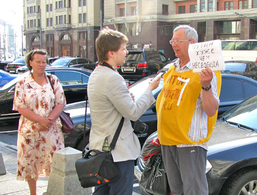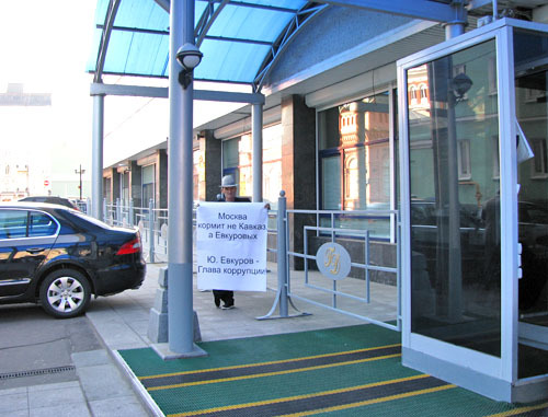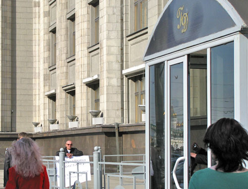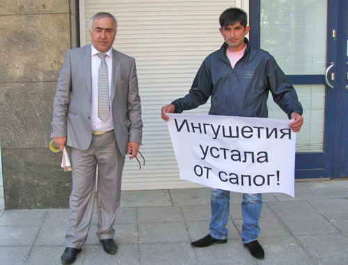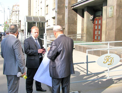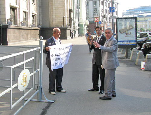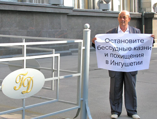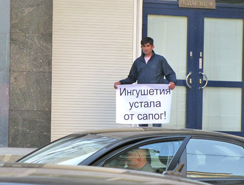 Члены ингушского регионального общественного движения "Мехк-Кхел" провели одиночные пикеты возле здания Государственной думы. Москва, 16 мая 2012 г. Фоторепортаж корреспондента "Кавказского узла" Натальи Крайновой