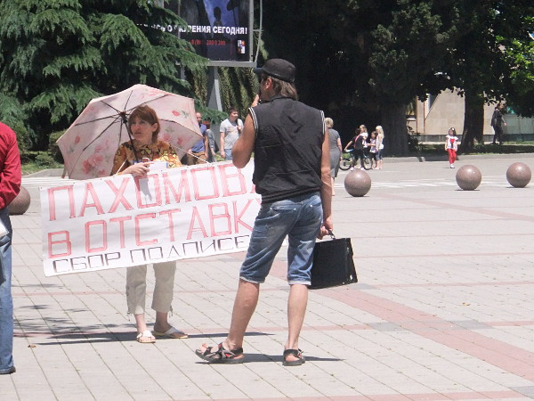 28 мая в 10-00 Ирина Бровкина начала очередной одиночный пикет за отставку мэра Сочи Анатолия Пахомова на площади у мэрии.