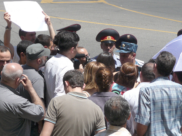 Участники акции перед зданием Главного управления полиции Армении.