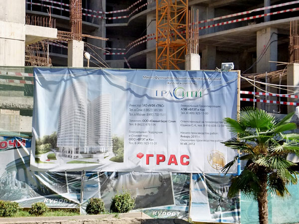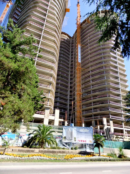 Стройка ведется на тротуаре Курортного проспекта на месте бывшего санатория "Заря". Сочи, октябрь 2012 г. Фоторепортаж корреспондента "Кавказского узла" Светланы Кравченко