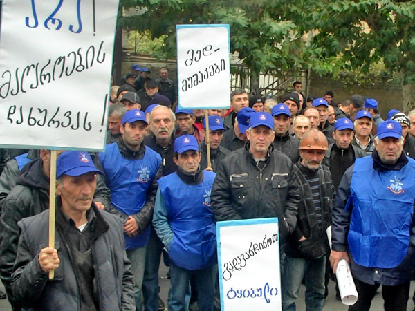 Акция протеста шахтеров перед зданием Парламента в Кутаиси. 21 ноября 2012 г. Фоторепортаж корреспондента "Кавказского узла" Беслана Кмузова