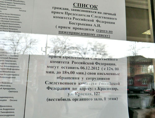 Личный прием главы Следственного комитета (СК) России Александра Бастрыкина. Краснодар, 6 декабря 2012 г. Фоторепортаж корреспондента "Кавказского узла" Натальи Дорохиной