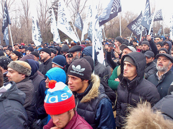 Участники митинга заявили о произволе правоохранительных органов и приняли резолюцию с перечислением своих претензий. Махачкала, 8 февраля 2013 г. Фоторепортаж корреспондента "Кавказского узла" Ахмеда Магомедова