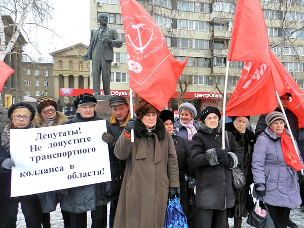 В сквере напротив областной думы перед началом заседания регионального парламента состоялась встреча депутатов фракции КПРФ с избирателями по проблемам пассажирских перевозок в селах